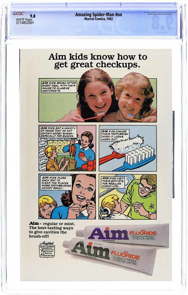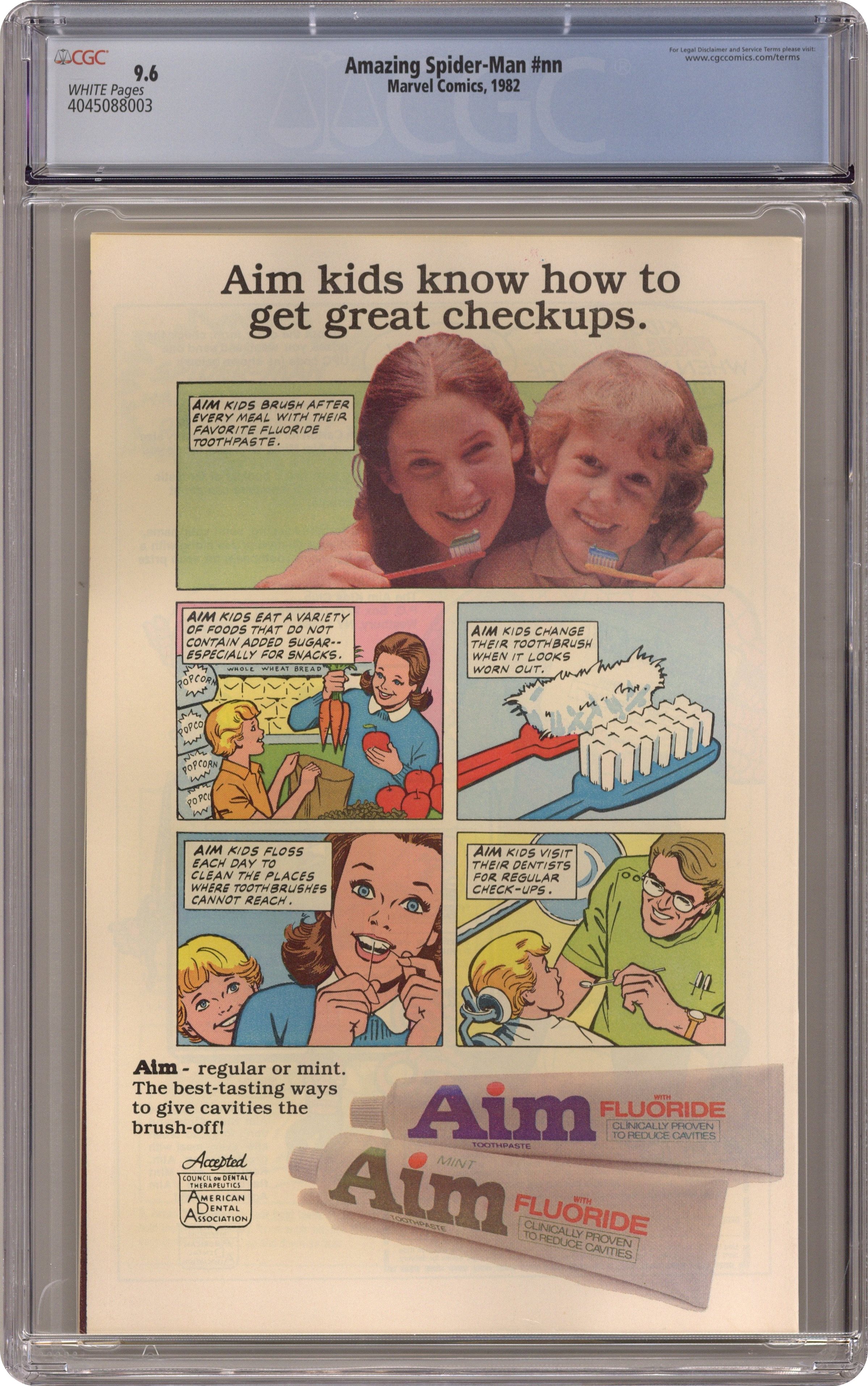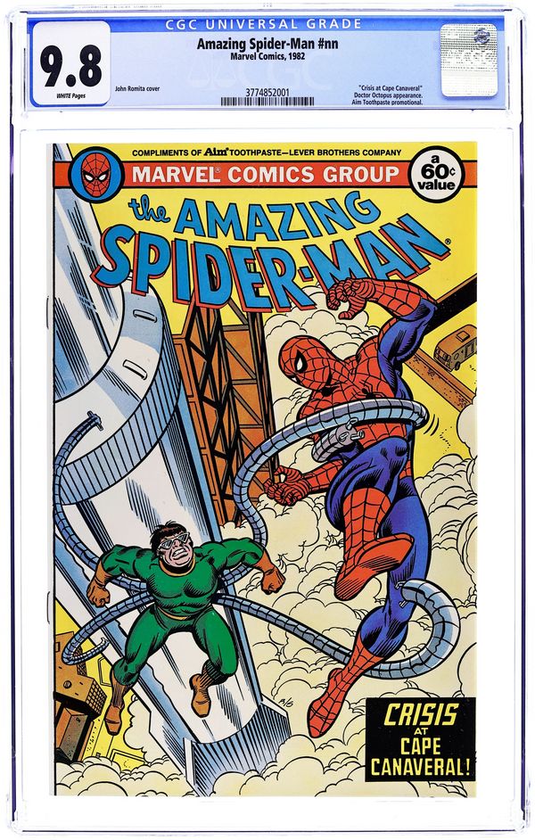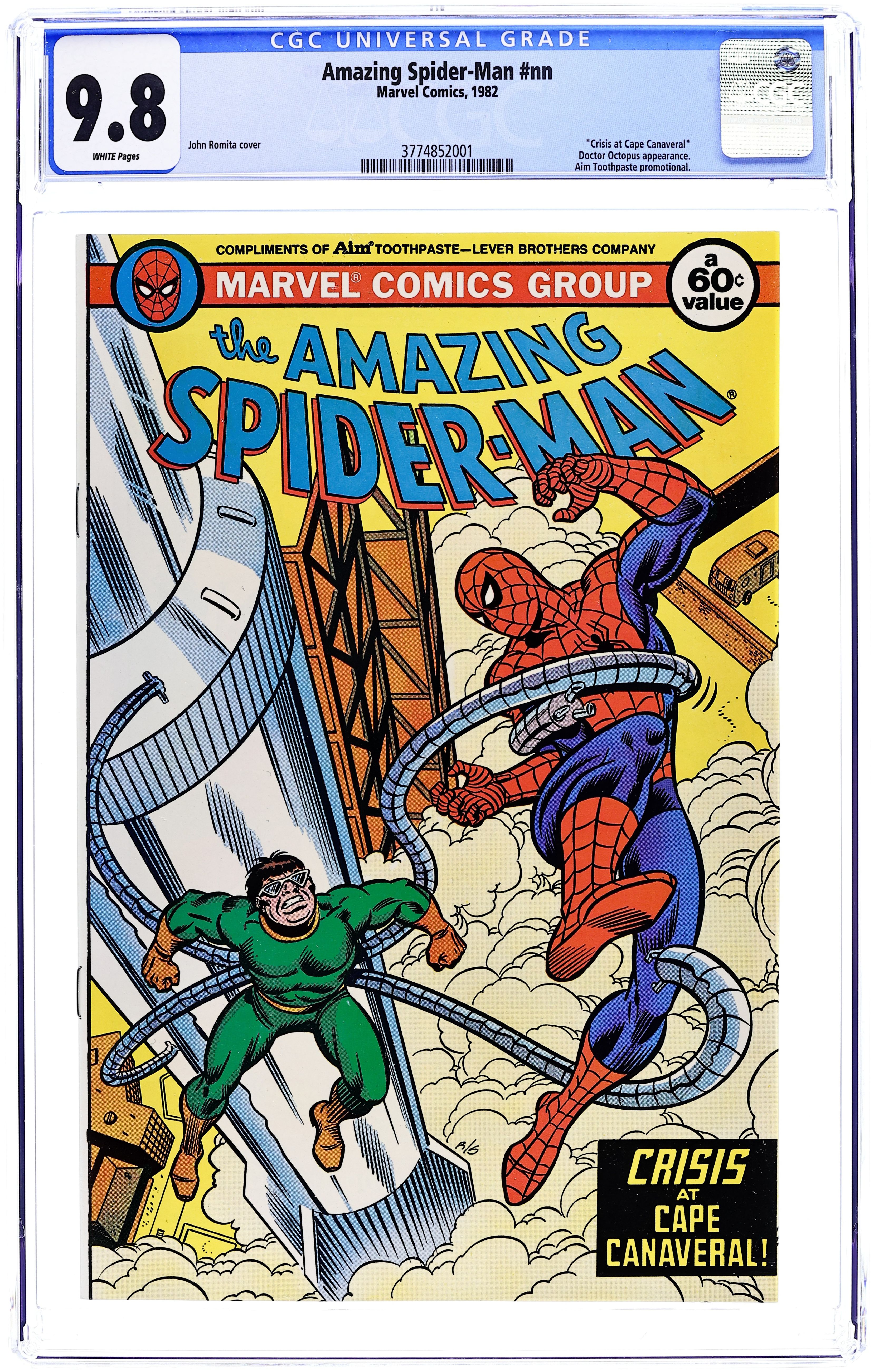 Spider-Man vs. Dr. Octopus. Promotional comic issued in 1982 by Aim Toothpaste. "Crisis at Cape Canaveral!". Cover price $0.60.