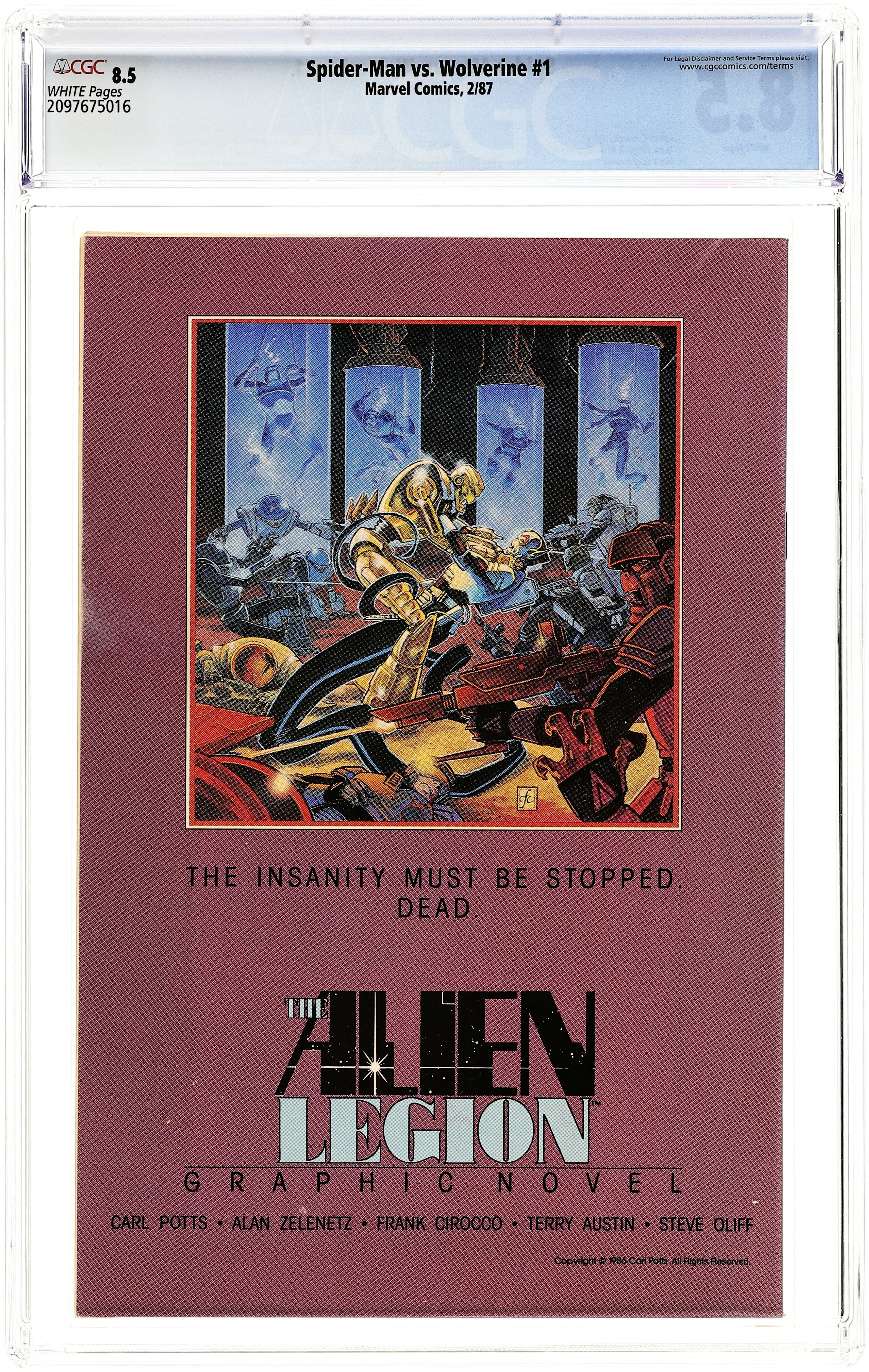 Spider-Man vs. Wolverine (1987 Marvel) 1st Edition 1D CGC 8.5