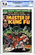 Written by Steve Englehart and Jim Starlin. Art and cover by Jim Starlin and Al Milgrom. Shang Chi, making his first appearance, is a master of martial arts and the son of Fu Manchu, a Chinese mandarin and scientist. Fu Manchu sends Shang Chi to England in order to assassinate the evil Dr. Petrie for the common good. Shang Chi reluctantly agrees, but after the deed is done he is confronted by Sir Denis Nayland Smith, a former British intelligence officer who tells him the truth about Fu Manchu; that he is a nearly immortal evil mastermind. Shang Chi travels back to his father's secret lair in New York and renounces him. Text articles by Roy Thomas and Englehart about the creation of Shang-Chi. Ad for Astonishing Tales #21. A brief obituary for Syd Shores. Ad for the Marvel fan club FOOM (Friends of Ol' Marvel). 36 pages, full color. $0.20. Cover price $0.20.