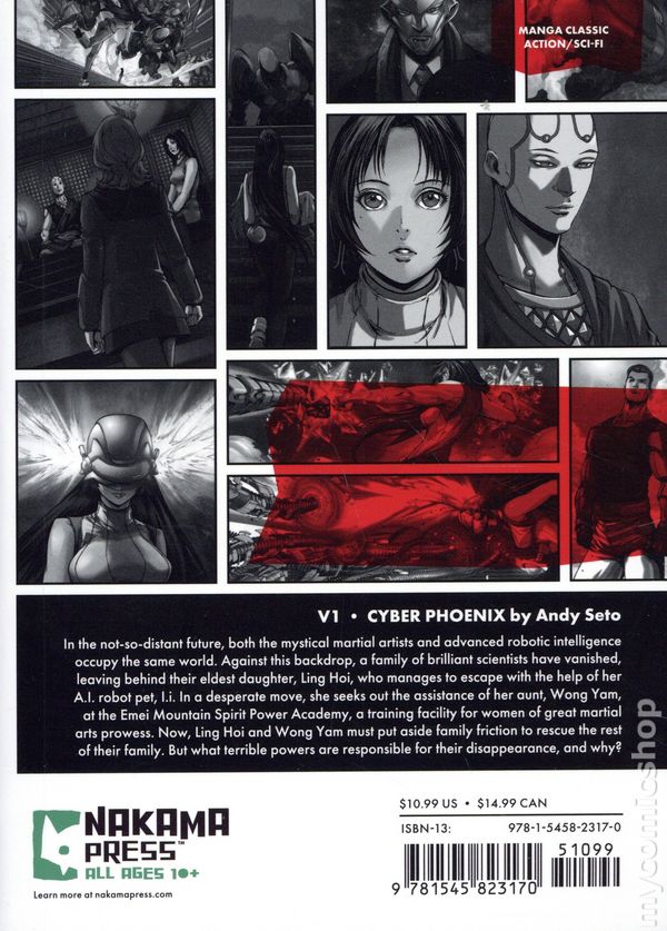 1st printing. Story and art by Andy Seto. In the near future, Dr. Yu Wong and her family, eager to use technology to enhance human evolution and adapt to the changing environment, have all vanished. Only the eldest daughter, Ling Hoi, managed to escape with the help of her artificially intelligent mechanical pet, I.i. Desperate, she seeks out her aunt, Wong Yam, at the Emei Mountain Spirit Power Academy and recruits her assistance in finding the rest of their family. Softcover, 5-in. x 7-in., 128 pages, full color. Cover price $10.99.