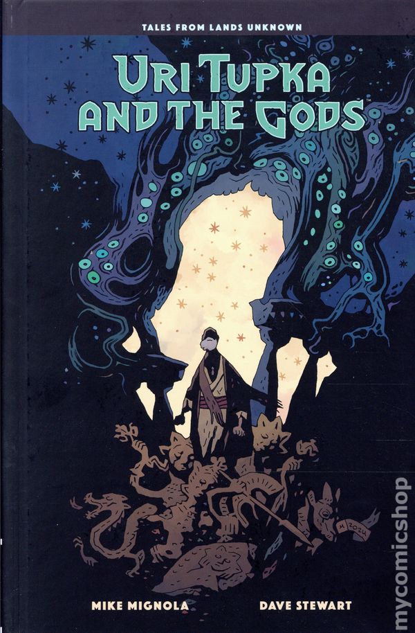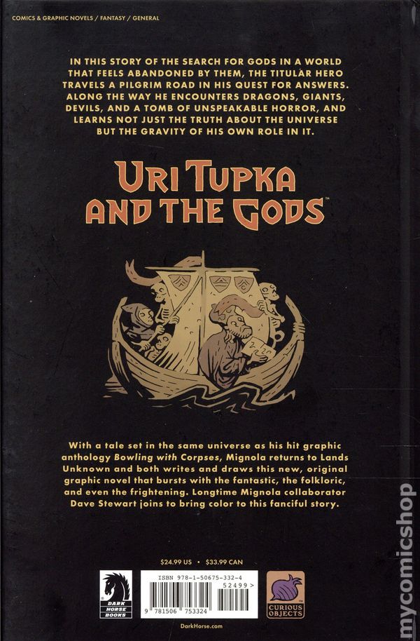 1st printing. Story and art by Mike Mignola. Set in the same universe as his hit comics anthology Bowling with Corpses, Mignola returns to Lands Unknown and both writes and draws this new, original graphic novel that bursts with the fantastic, the folkloric, and even the frightening. Longtime Mignola collaborator Dave Stewart joins to bring color to this fanciful story. A wayward theologian travels across mysterious lands and goes up against mythic monsters, bandits, and more in pursuit of proof of the existence of the old gods. In this story of the search for gods in a world that feels abandoned by them, the titular hero travels a pilgrim road in his quest for answers. Along the way he encounters dragons, giants, devils, and a tomb of unspeakable horror, and learns not just the truth about the universe but the gravity of his own role in it. Hardcover, 104 pages, full color. Rated T Cover price $24.99.