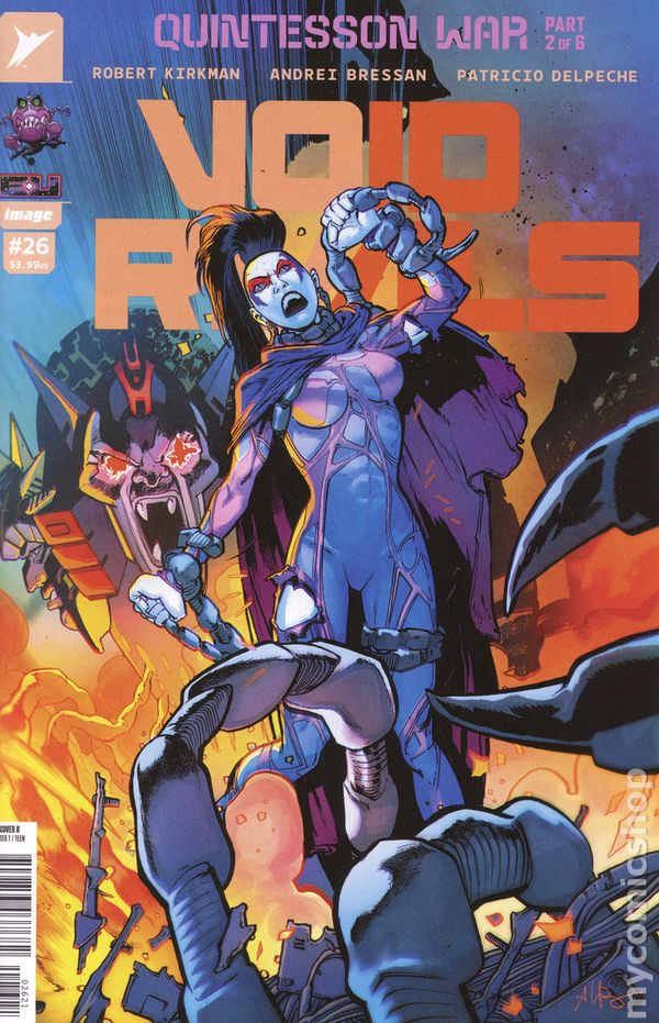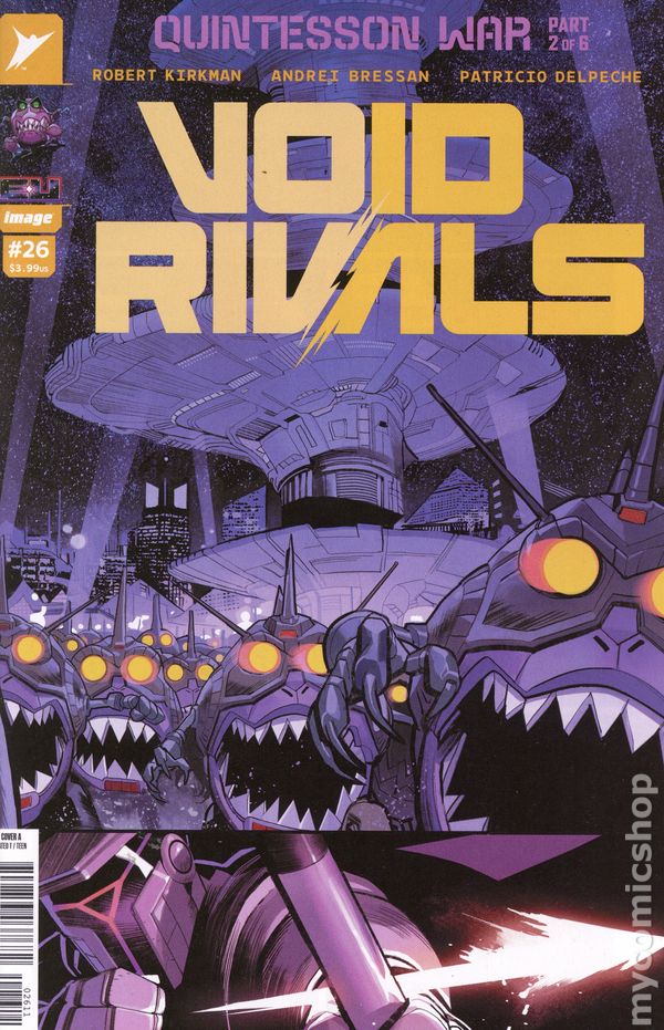 (W) Robert Kirkman (A) Andrei Bressan, Patricio Delpeche (CA) Ben Oliver THE QUINTESSON WAR RAGES ON! Sharkticon hordes sweep the Sacred Ring as the Zertonians and Agorrian’s finally reach unity--in fighting a common enemy! Cover price $3.99.