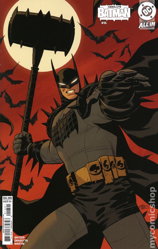 View scanLimited 1 for 25 Retailer Incentive Variant Cover. (W) Scott Snyder (A) Nick Dragotta (CA) TBA ABSOLUTE BATMAN IN HELL! Part two of our Absolute Batman/Absolute Wonder Woman story-- Bruce Wayne is on a desperate hunt to help his friend Waylon, now transformed into a monstrous crocodile roaming the sewers, consumed with a deadly hunger. Batman's last option for a cure is to turn to a god for help...but will he have to descend into the depths of hell to get it? Cover price $5.99.