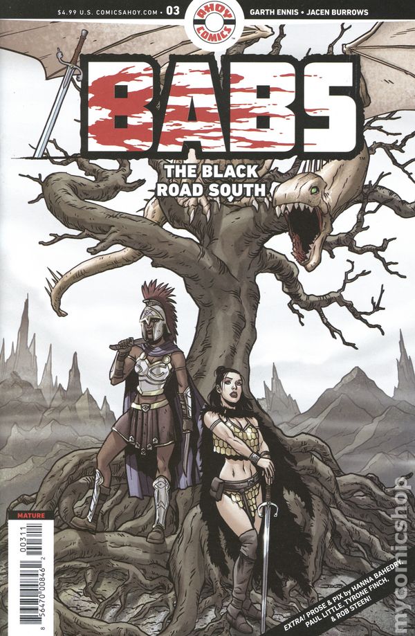 (W) Garth Ennis (A) Jacen Burrows (CA) Jacen Burrows On their quest down the demon-cursed Black Road South, Babs and Izzy face murderous creatures, a murderous hobbit whos into bondage, and a couple of particularly murderous, impossible-not-to-mock examples of cosmetic surgery attached to a narcissistic swordswoman! Is all of this stress worth the treasure that might await at roads end? Of course. Its treasure! 28 pages, Mature, full color Cover price $4.99.