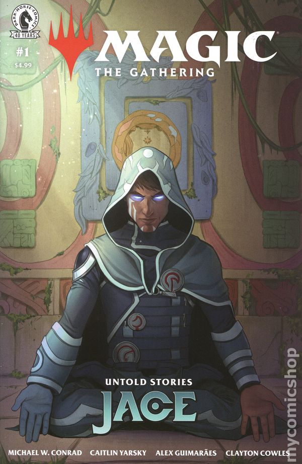 (W) Michael W. Conrad (A) Caitlin Yarsky (CA) Francesco Francavilla (C) Alex Guimarães Jace Beleren is the most talented mind mage in the Multiverse. A master of telepathy, illusion, and memory distortion, Jace’s heroic feats are tainted by a duplicitous past that threatens to unravel him at any given moment.Dive deep into Jace’s lost memories to uncover the manipulation by his mentor, Tezzeret, in pursuit of a dangerous magical artifact with the potential to reshape or destroy the Multiverse as we know it. Written by Eisner Award–winning author Michael W. Conrad and illustrated by the talented Caitlin Yarsky.• In partnership with Hasbro’s Wizards of the Coast, Dark Horse expands the world of Magic: The Gathering.• Written by Eisner Award–winning author Michael W. Conrad and illustrated by the talented Caitlin Yarsky.• Delve into an untold story of Planeswalker Jace Beleren. • Four-issue series. 32 pages, full color, not rated. Cover price $4.99.
