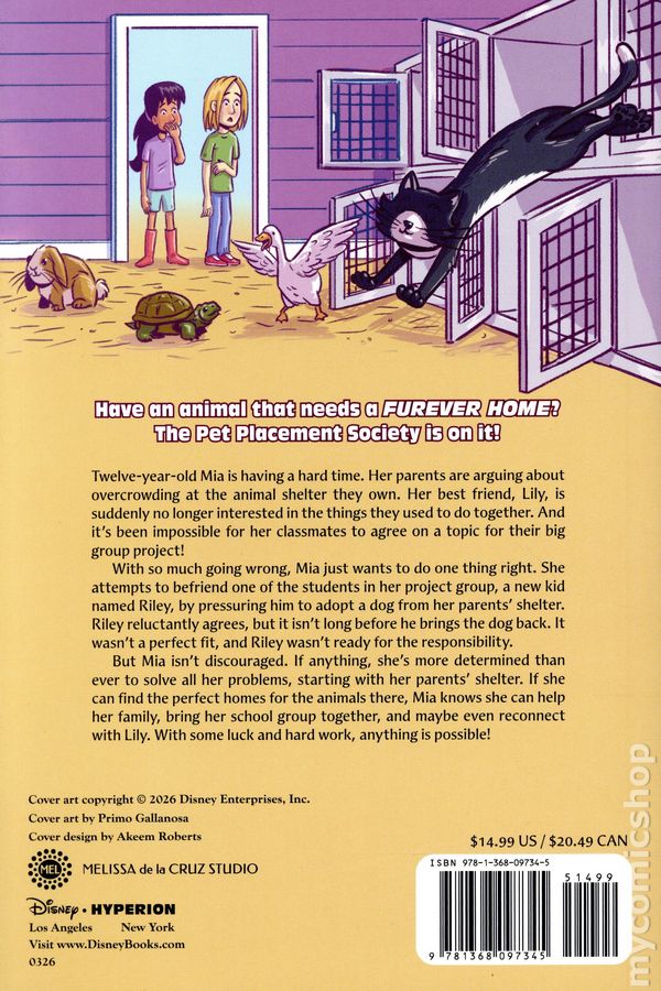 Volume 1 - 1st printing. Story and art by Primo Gallanosa. In this graphic novel series perfect for animal lovers and fans of The Baby-Sitters Club, a group of tweens form a club to help find the perfect homes for animals at the local shelter while learning how to deal with middle school drama. Twelve-year-old Mia is having a hard time. Her parents are arguing about overcrowding at the animal shelter they own. Her best friend, Lily, is suddenly no longer interested in the things they used to do together. And its been impossible for her classmates to agree on a topic for their big group project! With so much going wrong, Mia just wants to do one thing right. She attempts to befriend one of the students in her project group, a new kid named Riley, by pressuring him to adopt a dog from her parents shelter. Riley reluctantly agrees, but it isn't long before he brings the dog back. It wasn't a perfect fit, and Riley wasn't ready for the responsibility. But Mia isn't discouraged. If anything, she's more determined than ever to solve all her problems, starting with her parents shelter. If she can find the perfect homes for the animals there, Mia can help her family, bring her school group together, and maybe even reconnect with Lily. With some luck and hard work, anything is possible! Softcover, 6-in. x 9-in., 208 pages, full color. Age 8-12 years Cover price $14.99.