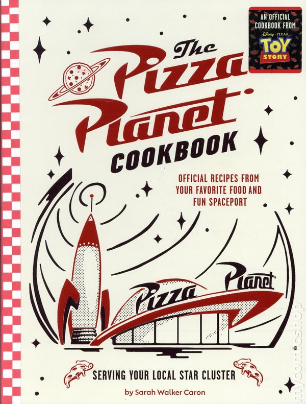1st printing. By Sarah Walker Caron. Blast off planet earth and embark on a cosmic culinary adventure: From intergalactic celebrations to refueling after a journey through the stars, these delicious recipes are sure to satisfy even the hungriest of travelers. You'll find all the basic techniques, ensuring you can quickly get up to speed with Pizza Planets signature doughs, sauces, and pizza-making tips. The recipes include everything you'd expect from the Pizza Planet you know and love from Disney and Pixar's Toy Story, including classic pies as well as Sicilian-style pizzas, deep-dish pizzas, and creative specialty pizzas—one for each of the planets, of course! Shareable sides, quirky desserts, and a few drinks round out the menu. Whether you're a seasoned pizza pro or just touching down on Pizza Planet for the first time, this cookbook will help launch your skills into orbit. Buckle up and get ready to explore a galaxy full of fantastic flavors right in your own kitchen! Hardcover, 7-in. x 9 1/2-in., 144 pages, full color. Cover price $24.99.