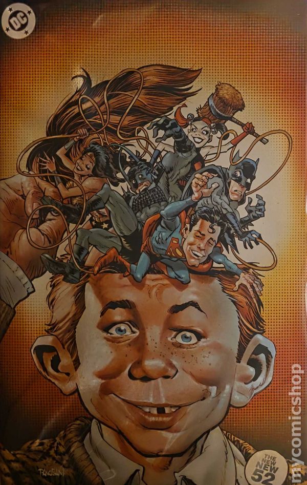 Foil Cover. (W) The Usual Gang Of Comic Book Creators Who Needed The Extra Money (A) The Usual Gang Of Comic Book Creators Who Needed The Extra Money (CA) Dan Panosian LOOK, IT'S NOT FARTACULAR BUT THEN AGAIN WHAT IS? Chip Zdarsky is a funny guy. Remember when he made that whole April Fools' gag comic with rub 'n' smell farts? Oh, wait, that was me, DC Comics E-I-C Marie Javins. Chip was the one saying, I'd turn back if I were you, but he couldn't stop me. Editors are a self-destructive lot. Which is why this year, I said, I give up, you do it, Chip, you are so much funnier and prettier and also better with cats than I am. And look, he went and did it. Chip demoted himself to editor. Chip is turning the DC universe on its ear and bringing you savage mockery of all we hold dear, and he is assisted in this brutal task by Matt Fraction, Gail Simone, Skottie Young, and many, many more. Next year? Back to farts. Includes MAD favorite Sergio Aragones with A MAD Look at Comic Book Stores, Guy vs. Spy by Jim Zub and Ramon Perez, and a DC Fold-In by Charles Soule and Ryan Browne. Plus a slew of MAD-style parodies of all DC Comics you hold dear, and some you've always hated anyway. MAD About DC #1 will fulfill your every comic book dream, or at least three or four of them. 64 pages, full color, rated 13+. Cover price $10.99.