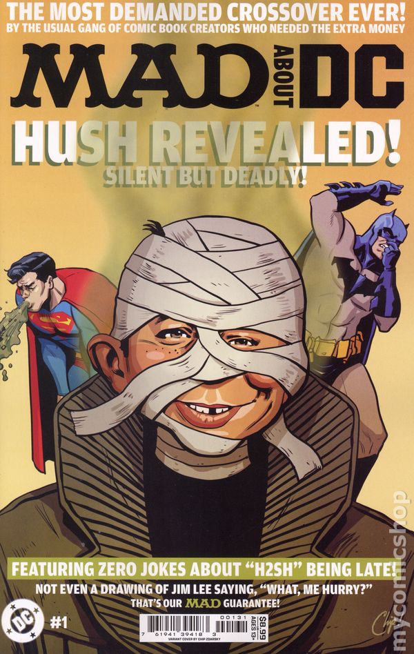 (W) The Usual Gang Of Comic Book Creators Who Needed The Extra Money (A) The Usual Gang Of Comic Book Creators Who Needed The Extra Money (CA) Chip Zdarsky LOOK, IT'S NOT FARTACULAR BUT THEN AGAIN WHAT IS? Chip Zdarsky is a funny guy. Remember when he made that whole April Fools' gag comic with rub 'n' smell farts? Oh, wait, that was me, DC Comics E-I-C Marie Javins. Chip was the one saying, I'd turn back if I were you, but he couldn't stop me. Editors are a self-destructive lot. Which is why this year, I said, I give up, you do it, Chip, you are so much funnier and prettier and also better with cats than I am. And look, he went and did it. Chip demoted himself to editor. Chip is turning the DC universe on its ear and bringing you savage mockery of all we hold dear, and he is assisted in this brutal task by Matt Fraction, Gail Simone, Skottie Young, and many, many more. Next year? Back to farts. Includes MAD favorite Sergio Aragones with A MAD Look at Comic Book Stores, Guy vs. Spy by Jim Zub and Ramon Perez, and a DC Fold-In by Charles Soule and Ryan Browne. Plus a slew of MAD-style parodies of all DC Comics you hold dear, and some you've always hated anyway. MAD About DC #1 will fulfill your every comic book dream, or at least three or four of them. 64 pages, full color, rated 13+. Cover price $8.99.