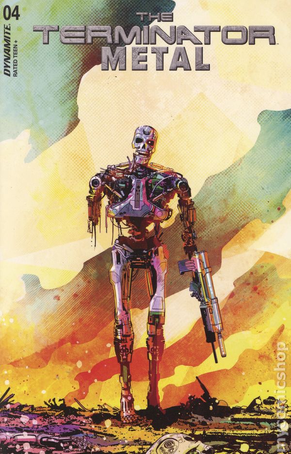 Limited 1 for 5 Retailer Incentive Variant Cover. (W) Declan Shalvey, Rory McConville (A) Giona Zefiro (CA) Bob Layton MISSION CREEP! The survivors of Judgement Day have fought heroically against Skynets untiring cybernetic killers, but fragile biology is inexorably giving way to implacable metal. If humanity is going to have any chance of achieving victory, the Resistance must start acting — and thinking — more like its enemy. But will the ruthlessly efficient tactics of the machines succeed in the hands of flesh-and-blood fighters? And if so, what will it end up costing them?Discover the top-secret answers in The Terminator: Metal #4, intercepted by intelligence officers DECLAN SHALVEY and RORY MCCONVILLE and expertly decoded by GIONA ZEFIRO — featuring additional image analysis by SHALVEY, BOB LAYTON, SEBASTIAN PIRIZ, and EMANUELE ERCOLANI! Cover price $4.99.