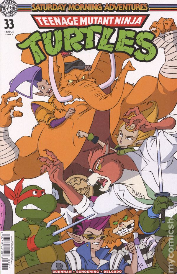 (W) Peter Laird (A) Jim Lawson (CA) Ken Mitchroney The return of an old ally brings both joy and implications not just for the Turtles but for the future of humanity on Planet Earth?! Its not only old friends who are stopping by to visit the Ninja Turtles—the Foot Clan is dropping in as well, with a shocking revelation. Time moves forward and faster than ever before in this issue, and the danger that comes along with it will be fast and ferocious as well! 32 pages, not rated, full color Cover price $4.99.