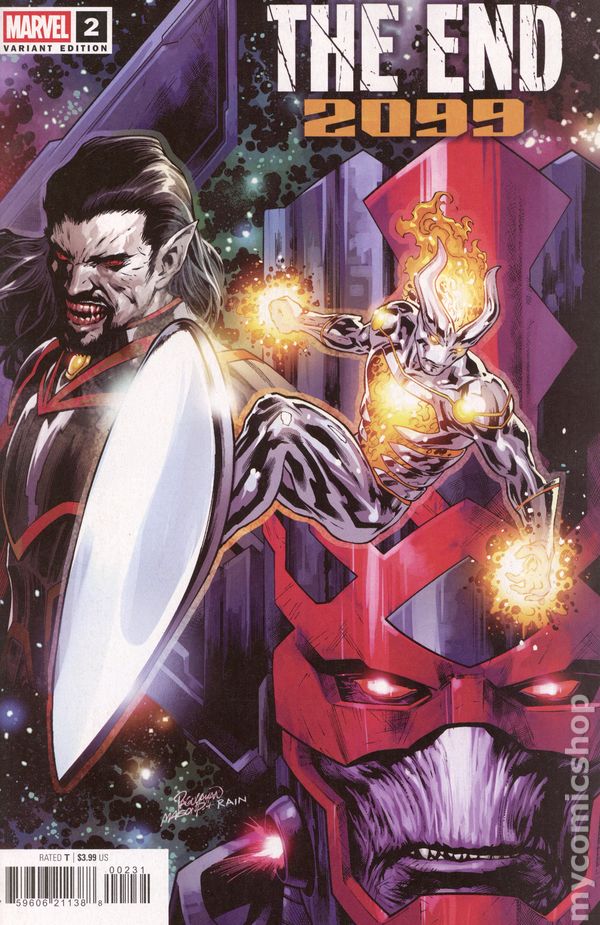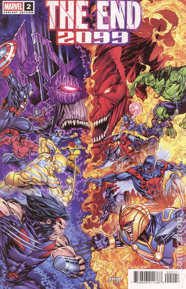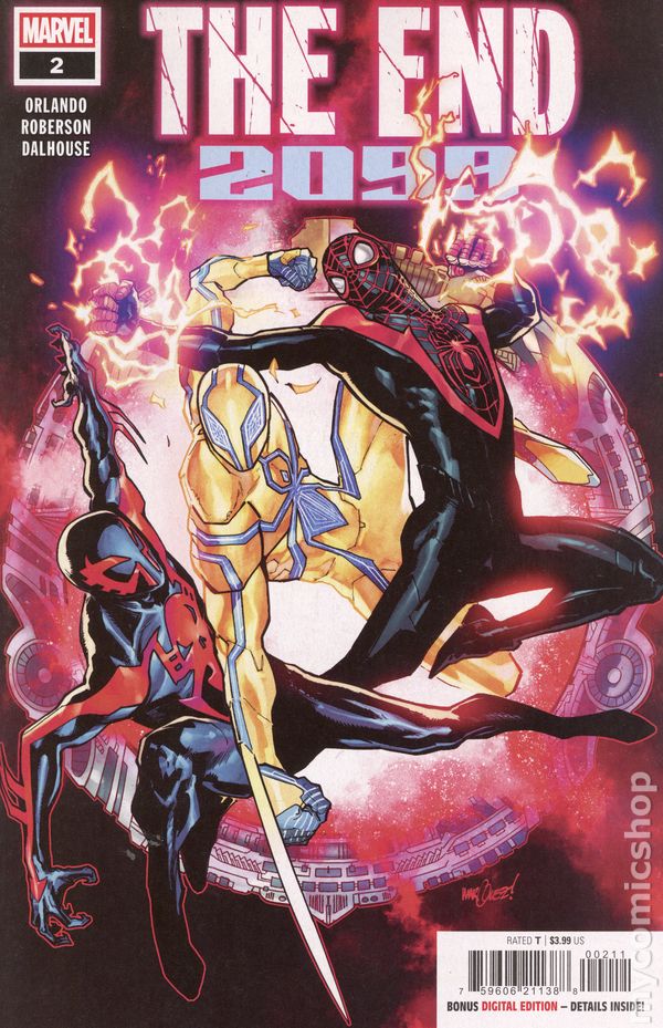 Limited 1 for 25 Retailer Incentive Variant Cover. (W) Steve Orlando (A) Ibraim Roberson (CA) Francesco Manna SPIDER-MAN VS. SPIDER-MAN VS. SPIDER-MAN! All-out war rages as heroes from across the Multiverse battle against their own universe's extinction! Bone and adamantium clash as NOVA 2099 and AGE OF APOCALYPSE WEAPON X cross claws! The ground quakes as RED HULK and RED HULK 2099 brawl in a battle between behemoths! Reality strains at the seams as HOUSE OF M WANDA pits her magic against DOCTOR STRANGE 2099! As the casualties start rising, SPIDER-MAN 2099 tries to rise above the chaos - but when his pleas for peace are met with punches, it'll be all he can do to protect himself from the onslaught. Heroes will die! Fates will be changed forever! And the 2099 UNIVERSE will never be the same again after this action-packed issue! Cover price $3.99.