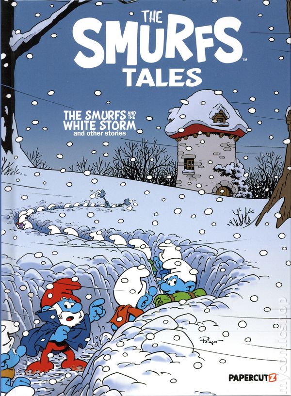 Volume 15 - 1st printing. "The Smurfs and the White Storms and Other Stories!" Written by Peyo, Thierry Culliford, Alain Jost, and Pascal Garray. Art by Peyo, Alan Maury, and Pascal Garray. Cover by Peyo. There's a storm a-brewing Brainy, Jokey and Handy Smurf head out of Smurf Village to ride their brand-new snow sled. But when a dangerous snowstorm strikes , will they discover a new friend or an old enemy in the shelter they seek refuge in? And can Papa Smurf convince his Smurfs to work together to save their village before it is too late? Plus - Johan and Peewit The Black Arrow Benny Breakiron Like a Box of Chocolates And more Smurfs! Hardcover, 6-in. x 9-in., 160 pages, full color. All Ages Cover price $22.99.