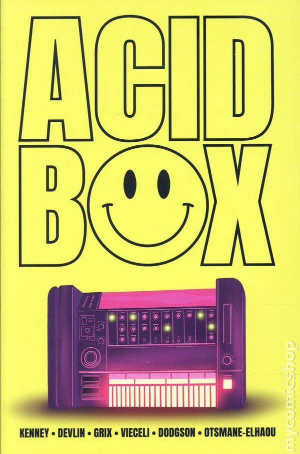 1st printing. Written by Sara Kenney. Art by James Devlin, Ria Grix, and Emma Vieceli. Cover by Alison Sampson. Jade Nyo just wants to party, but how is she supposed to enjoy herself when the world around her is falling apart? It's 2026 and Jade's out clubbing in Glasgow when she runs into a trio of mysterious women in the toilets. They tell her they're Liminals: guardians of portals that let you travel through space and time. They give Jade something called an Acid Box and tell her she needs to use it to avert a global disaster. But the Acid Box is broken, and Jade must travel back to 1994 in a quest to fix it. As she tries to change the future, the work and pressure of making friends and saving the world might just prove to be too much for her messy and imperfect brain…A celebration of rave culture through history, ACID BOX explores what it means to be human. Balancing joy and anger, scientific theory and creative response, the unbearable weight of responsibility and the drive to make change – this book shows how exhausting and exhilarating it can all be. Softcover, 6 1/4-in. x 9 3/4-in., 200 pages, full color. Mature Readers Cover price $19.99.