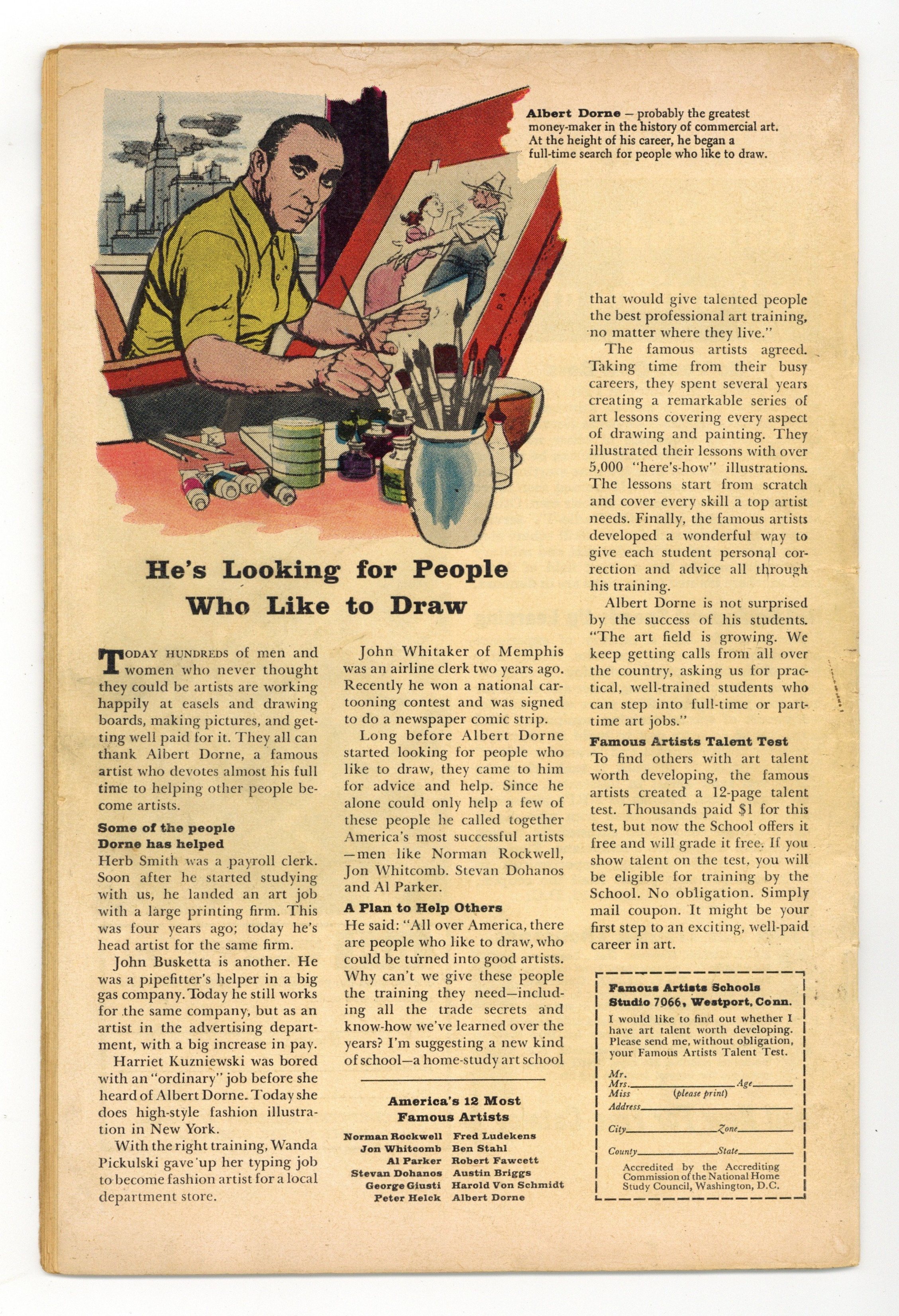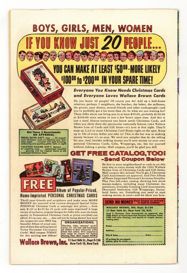 Starts Jan 3 Cover by Russ Heath. "The Locked Room!", script by Paul S. Newman, art by Mort Drucker; An Indian mystic needs half a million dollars to build a temple so he bets an American businessman that he can use the power of his mind to move chess pieces in a locked room thousands of miles away. "The Search" text story. "The Inventors!", art by Bill Benulis; Machines take over and make slaves out of humanity. "Wings in the Night!", pencils by Dick Ayers, inks by Ernie Bache; A destitute man who feeds the park birds gets in trouble when the birds begin stealing for him. "The Rag Doll!", art by John Tartaglione; A child with a new baby sister feels neglected so she pours her love into a rag doll pretending that it is her baby. "The Living Proof," script by Carl Wessler, art by Pete Tumlinson; A newspaper editor refuses to believe his reporter's story about meeting men from Mars so the reporter becomes one of them in order to convince the man and take his daughter away to Mars with him. 36 pgs., full color. $0.10. Cover price $0.10.