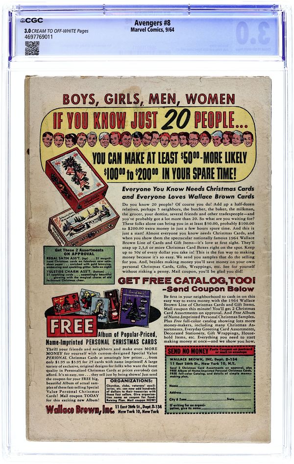 Tags: Marvel Legacy Numbering: Avengers (part 8), AvengersAvengers (1963 1st Series) 8 CGC 4.0