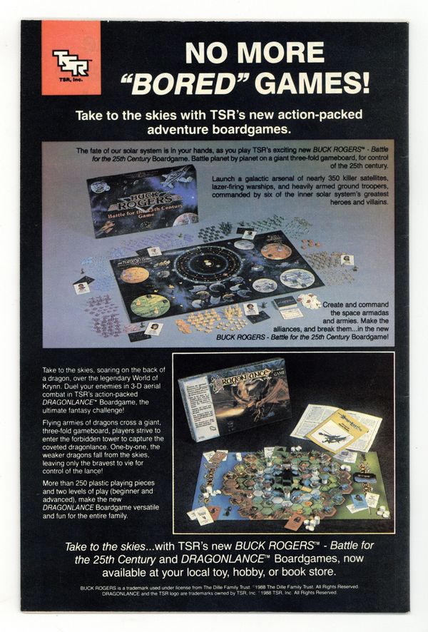 Starts Apr 27 Direct Edition. Cover art by Gil Kane. Roman Holiday, script by Dwayne McDuffie, art by Nelson Dewey; As in the popular time-travel films, Marty McFly travels through history; in this adventure, he finds himself in ancient Rome in a battle with Bifficus Antanneny ... and the loser gets fed to the lions! Adapted from the TV script by Mark & Michael Klastorin. Fievel Goes West film ad. 36 pages, full color. Cover price $1.25.