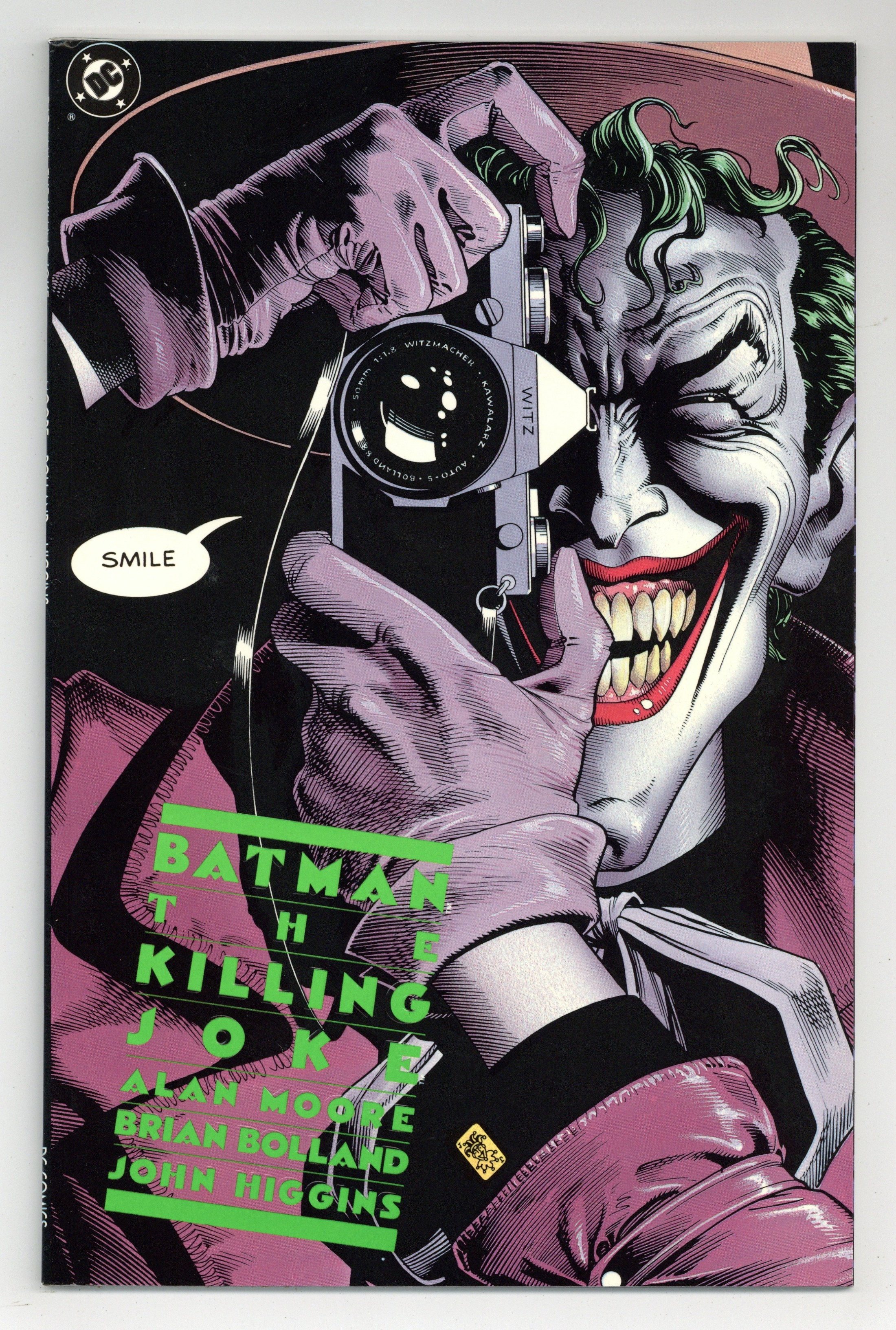 Starts May 4 1st Printing. Batman matches wits with his arch nemesis The Joker in this critically acclaimed, prestige format one-shot. He also laughs at one of his jokes. The book is infamous for the scene in which The Joker shoots and cripples Barbara Gordon, effectively ending her crime fighting career as Batgirl. Written by Alan Moore, with art by Brian Bolland. 52 pages, full color. NOTE: 1st Printing, title is printed in lime green embossed ink. All others are later printings. Cover price $3.50.