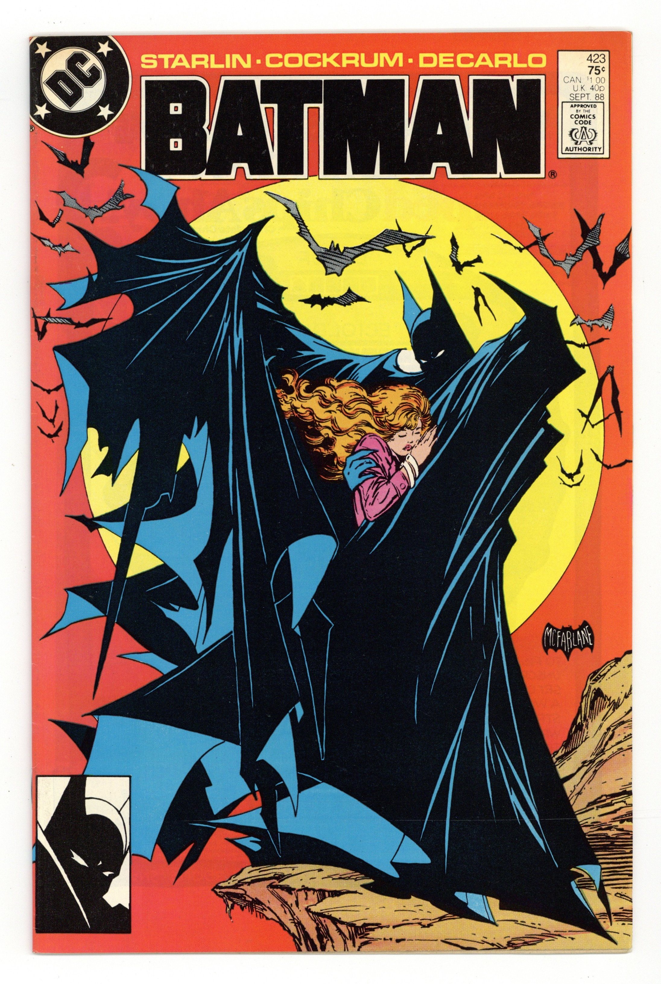 Starts Jan 3 1st Printing. Direct Edition. Three cops relate three tales of the Dark Knight, revealing different facets of Batman's character, in "You Shoulda Seen Him..." Script by Jim Starlin, pencils by Dave Cockrum, inks by Mike DeCarlo. Todd McFarlane cover. 1st printing. NOTE: Most issues from 397-432 were reprinted in 1989 and sold in multipacks. These 2nd and 3rd prints have back cover ads dated 1989. 36 Pages, Full Color. Cover price $0.75.