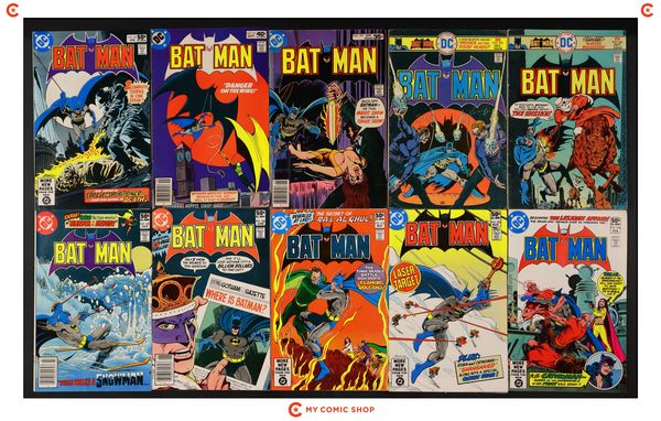 Issues 432, 434, 437, 444, 445, 451, 452, 457, 471, and 480 of Batman (1940). Most will grade in the VF to FN range.