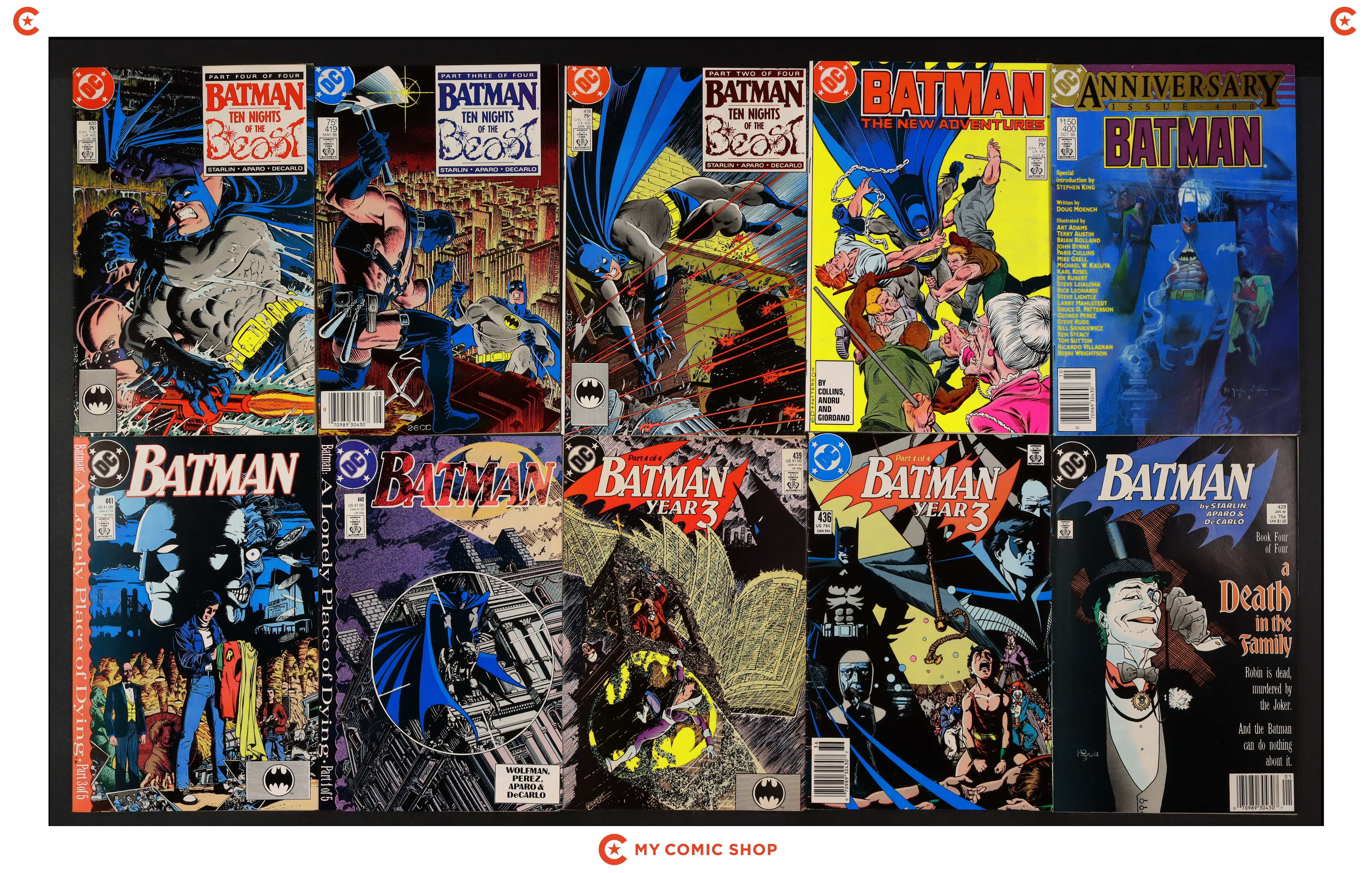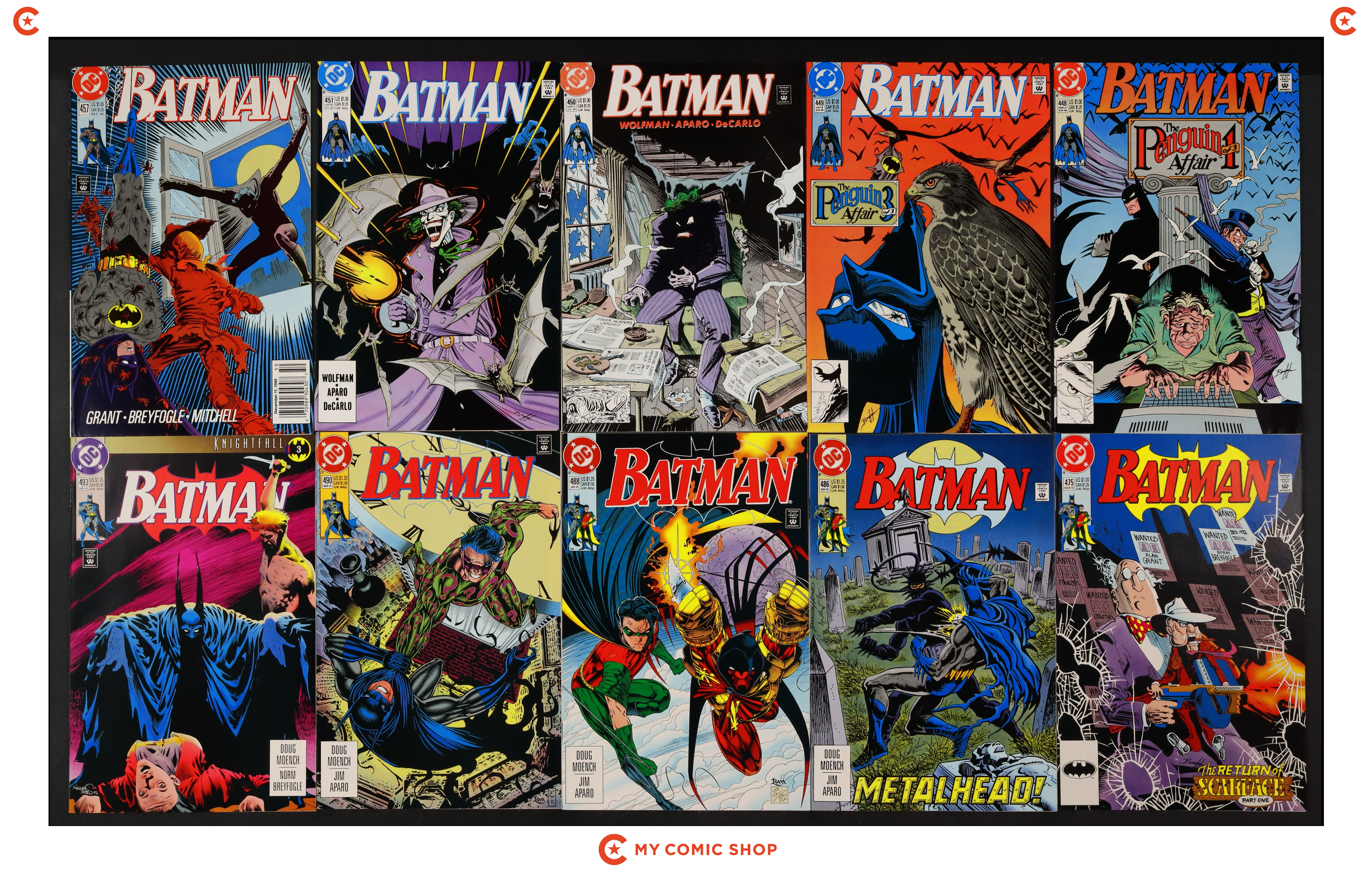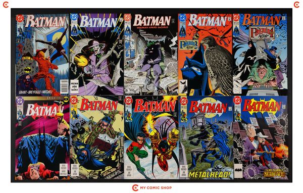 Issues 448-451, 457N, 475, 486, 488, 490, 493 of Batman (1940). Most will grade in the FN to VF+ range.