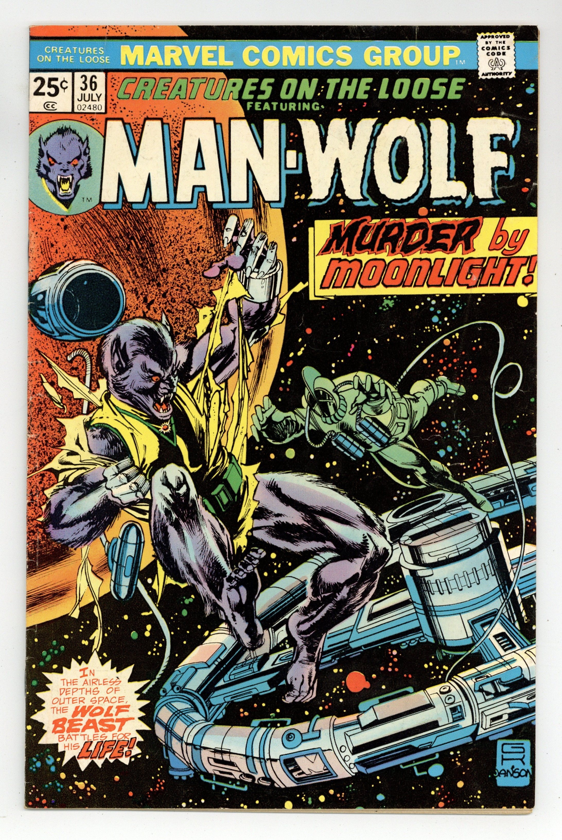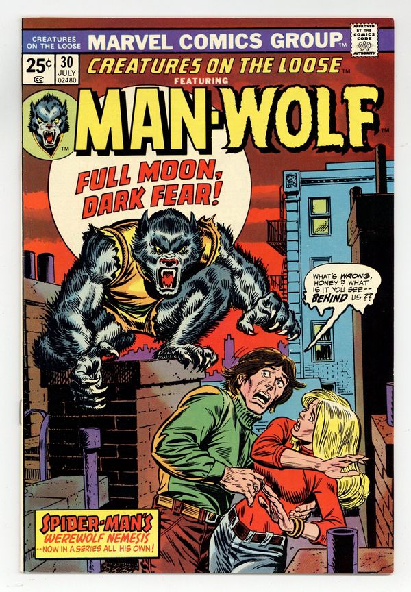 Starts Mar 23 New Man-Wolf series begins. "Full Moon, Dark Fear!" Script by Doug Moench, pencils by George Tuska, inks by Vince Colletta. Letter to the editor from comic writer Ralph Macchio. The letters page also contains Marvel Value Stamp series A # 65 (Iceman). Reprint: "Joe's Weak Spot" with art by Bill Walton. Gil Kane/John Romita Sr. cover? Cover price $0.25.