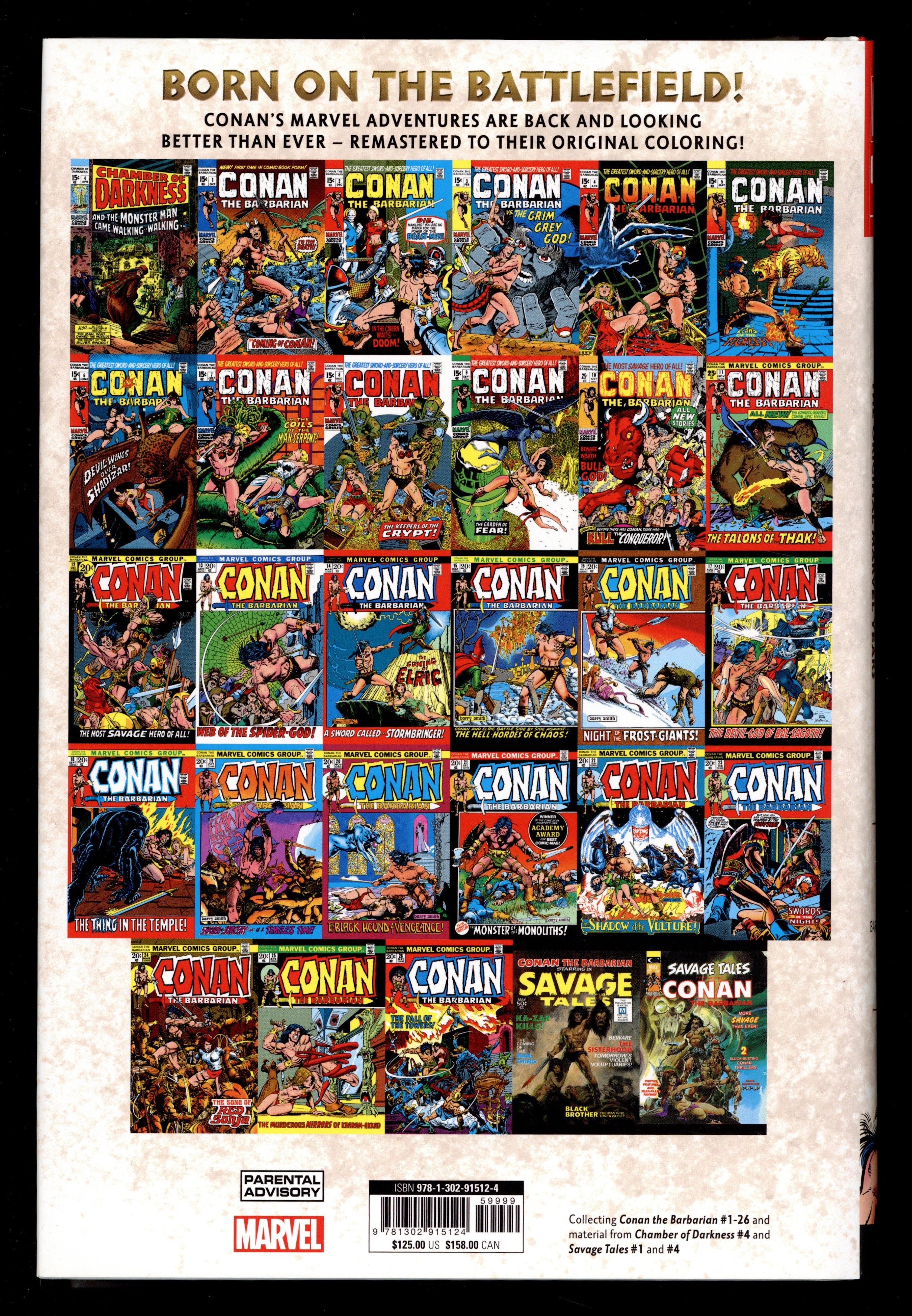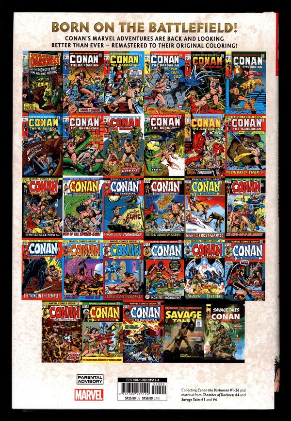 1st Edition - Volume 1 - 1st printing. Collects Conan the Barbarian (1970-1993 Marvel) #1-26 and material from Savage Tales (1971-1975 Magazine) #1 and 4, Chamber of Darkness (1969-1970) #4 and Conan Classic (1994) #1-11.
