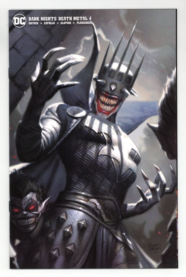 Starts May 4 Comics Elite exclusive virgin cover by Ryan Brown. Written by Scott Snyder. Art by Greg Capullo and Jonathan Glapion. The Darkest Knight has won. With absolute power at the villains fingertips, Wonder Woman and the rest of the DC heroes are nothing to him. As the Darkest Knight turns his sights to his true goal, remaking the Multiverse in his image, can Earths heroes rally together to make a last stand? 32 pages, full color.