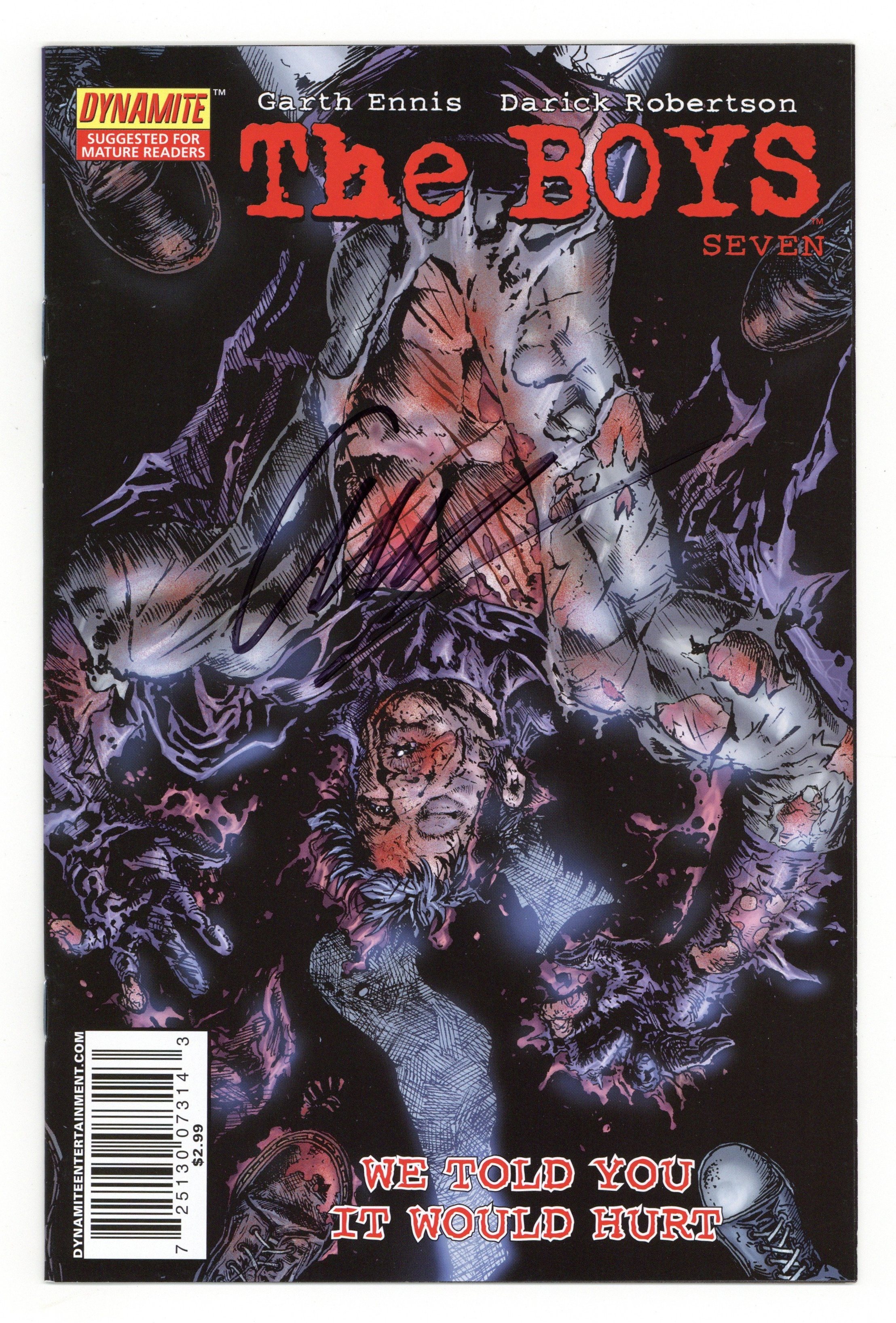 Signed by Garth Ennis. No autograph certification is included, however, the cover is silver stamped in the bottom right hand corner.