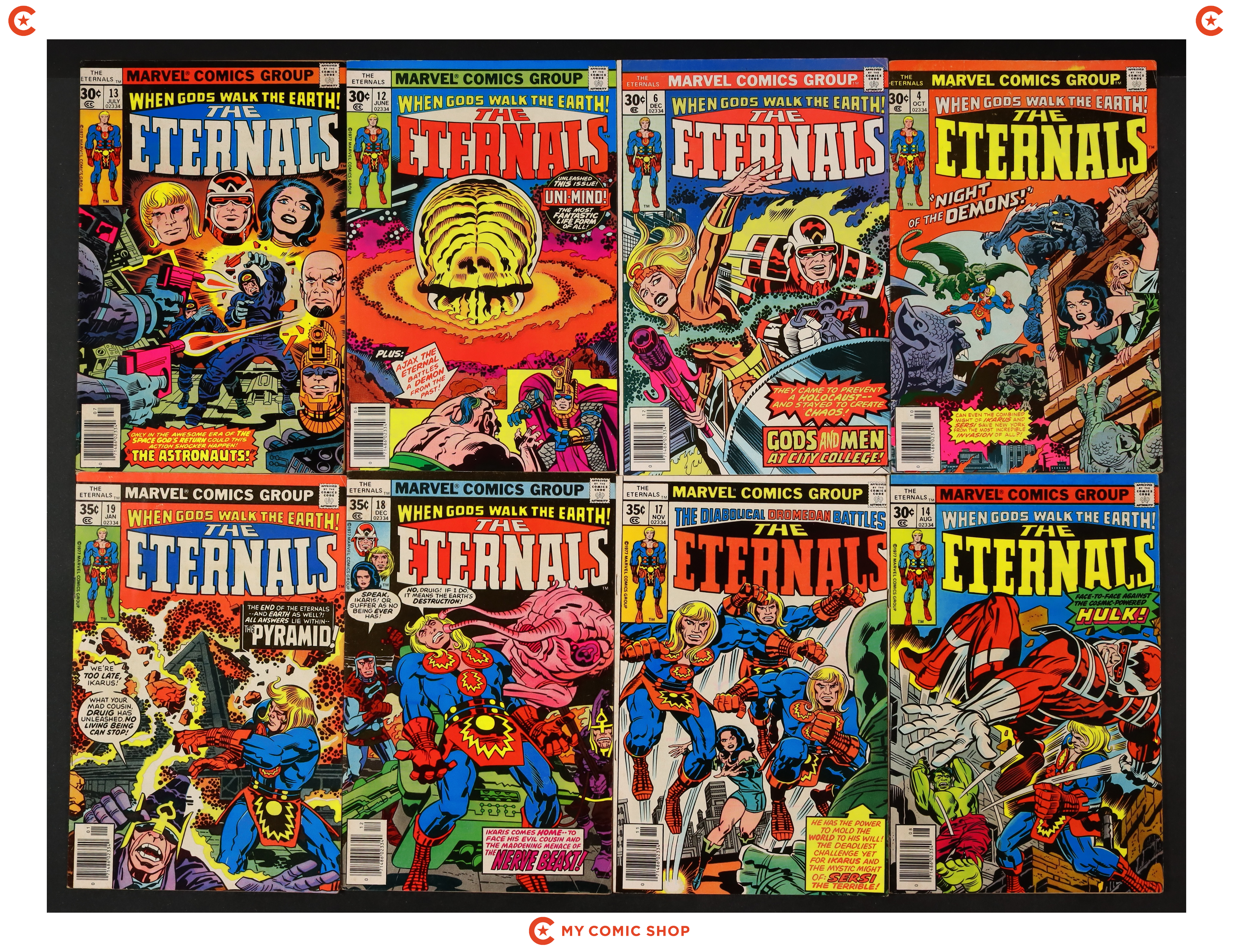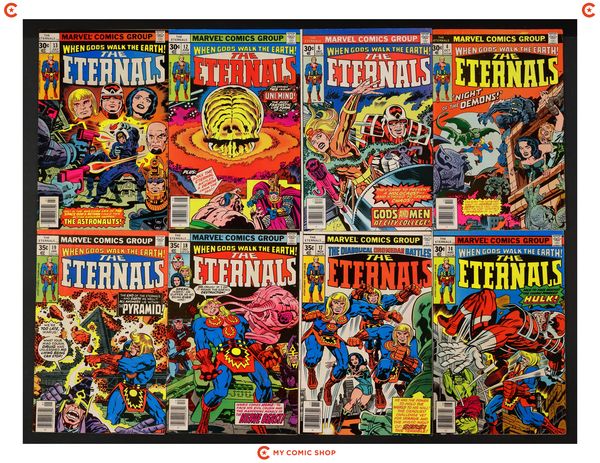 Issues 4, 6, 12-14, 17-19 of Eternals (1976 1st Series). Most will grade in the GD/VG to VG/FN range.