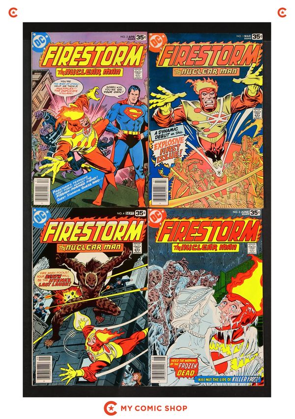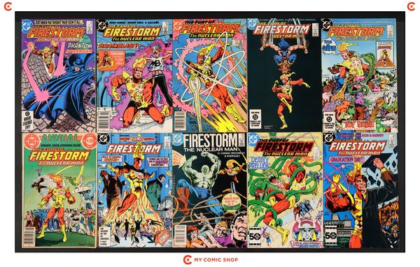 Issues 25, 26, 30-32, 40, 46, 51, and 56 of Firestorm (1982 2nd Series); and 2 of Firestorm (1982 2nd Series) Annual. Most will grade in the FN range.