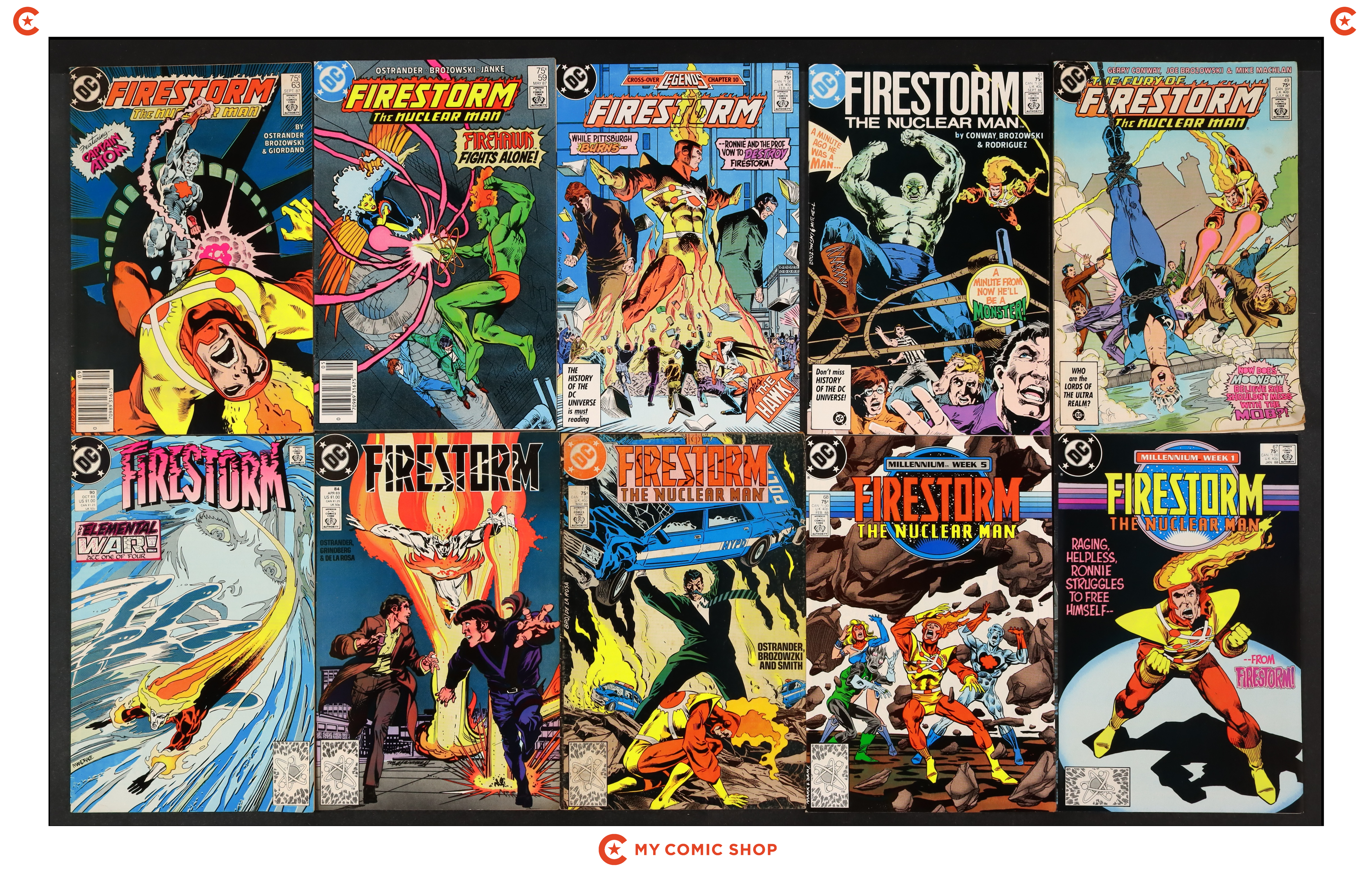 Issues 49, 51, 56, 59, 63, 67, 68, 71, 84, and 90 of Firestorm (1982 2nd Series). Most will grade in the FN range with a few grading VG.