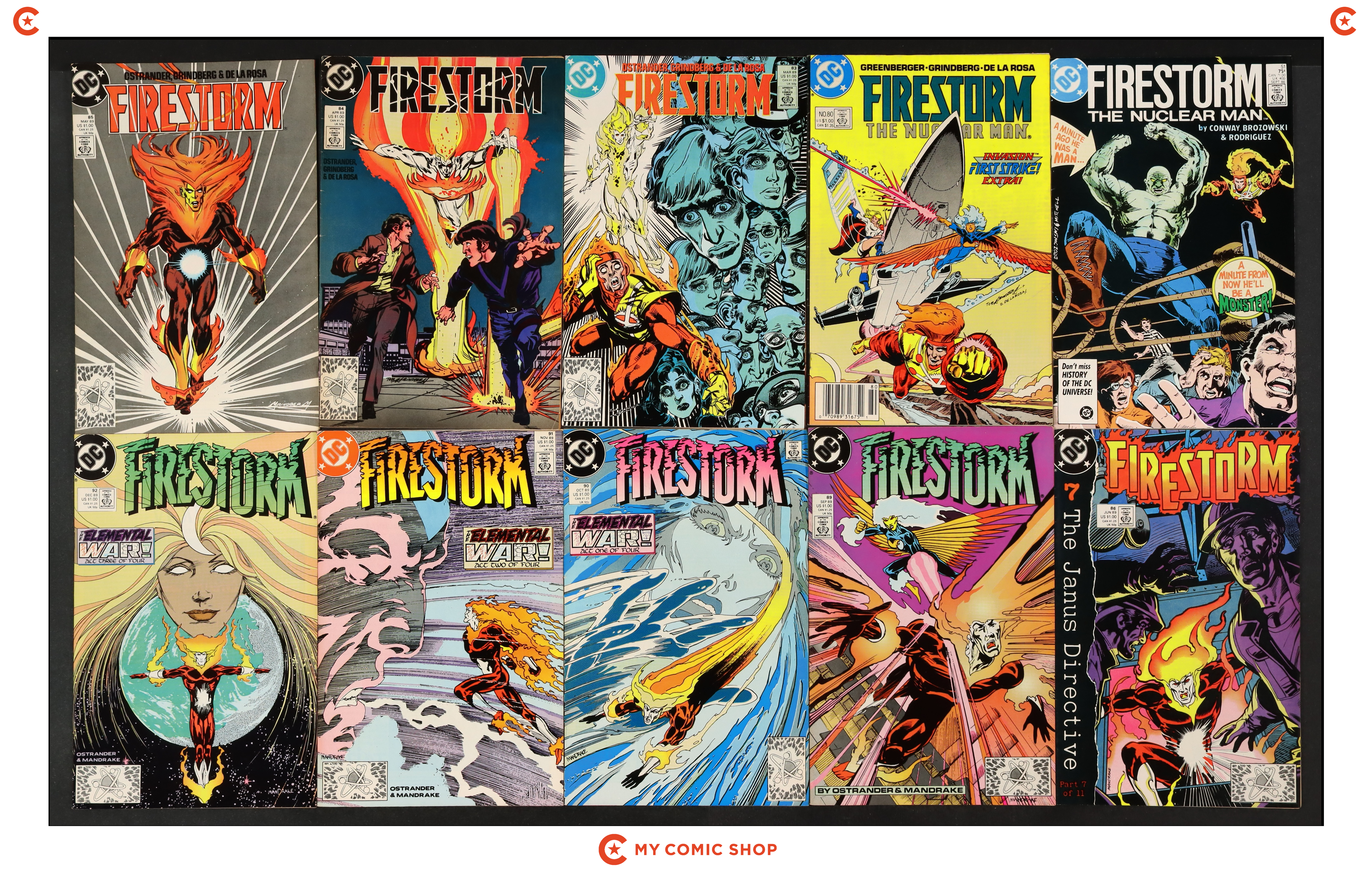 Issues 51, 80, 83-86, and 89-92 of Firestorm (1982 2nd Series). Most will grade in the FN range with a few grading VG.