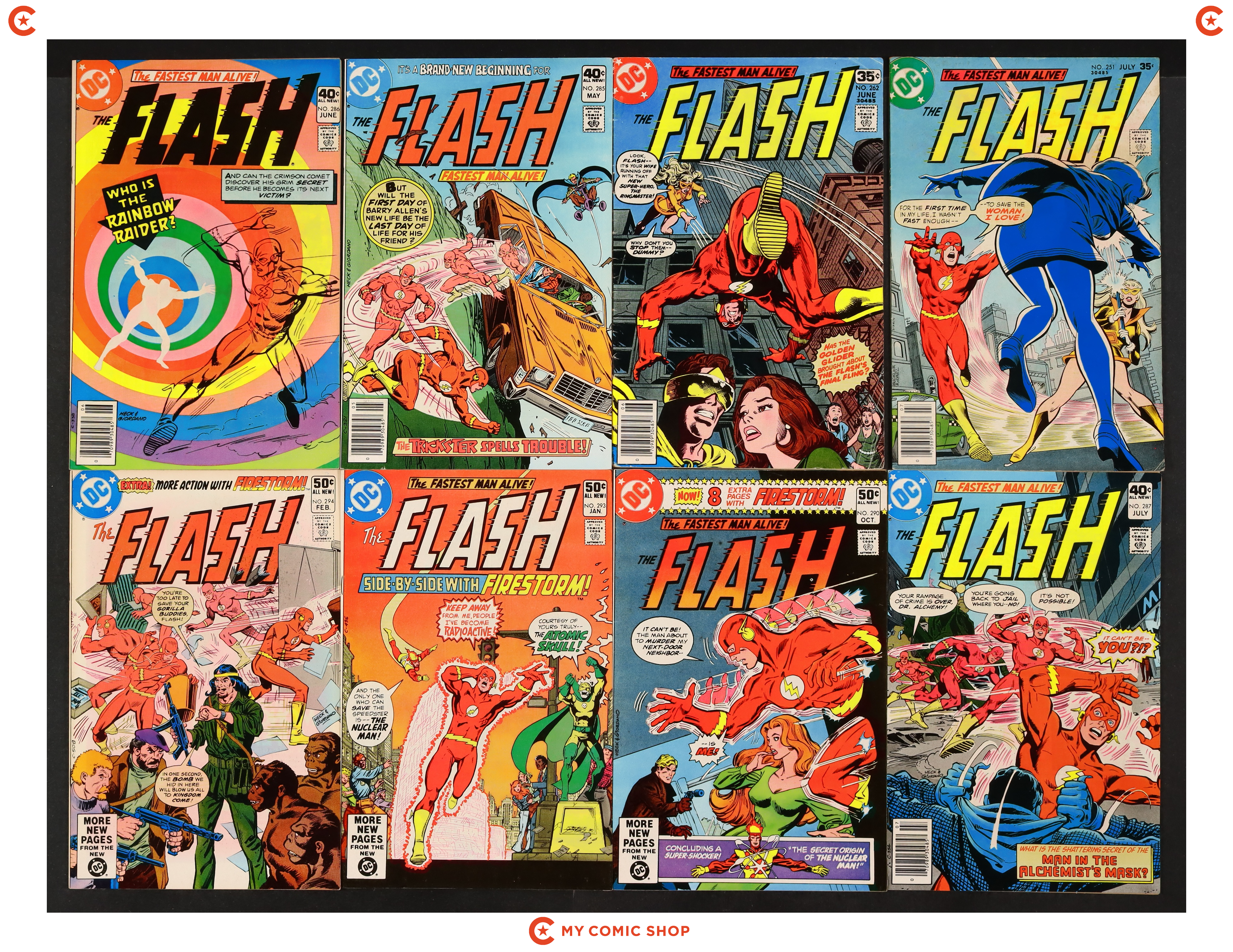 Issues 251, 262, 285-287, 290, 293, 294 of Flash (1959 1st Series DC). Most will grade in the VG/FN to FN/VF range.