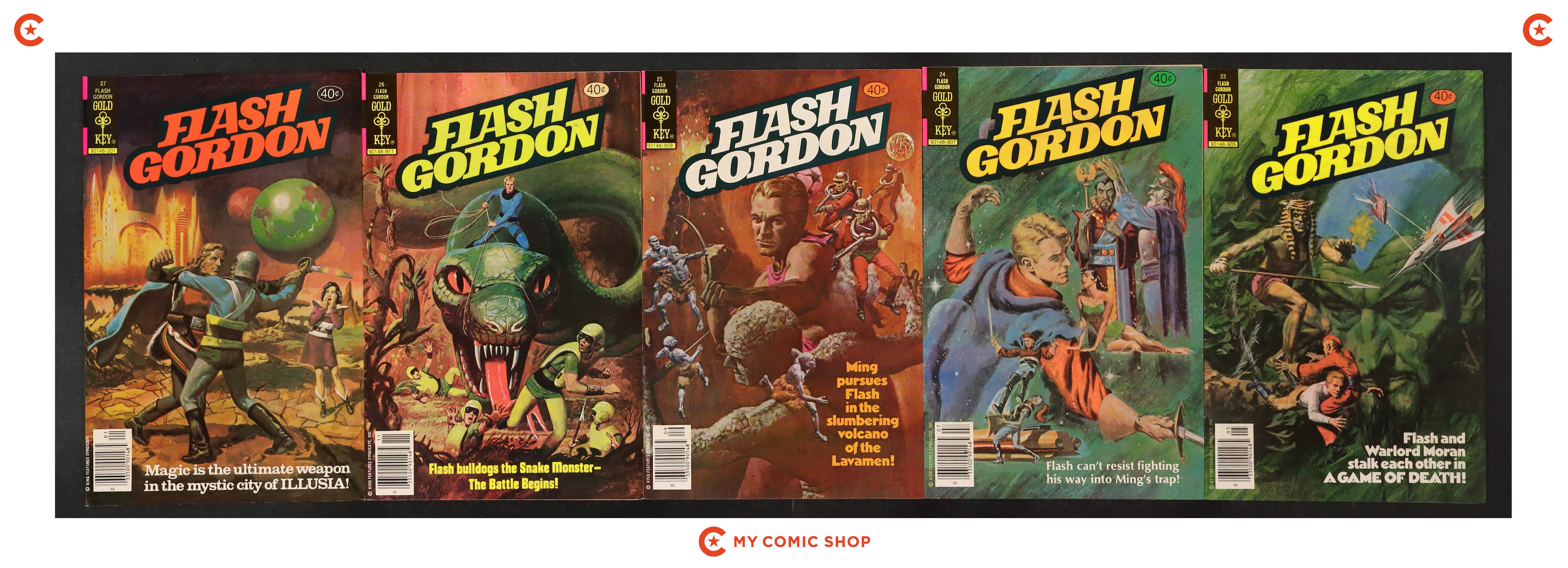 Issues 23-27 of Flash Gordon (1966 King/Charlton/Gold Key). Most will grade in the VF to NM range.