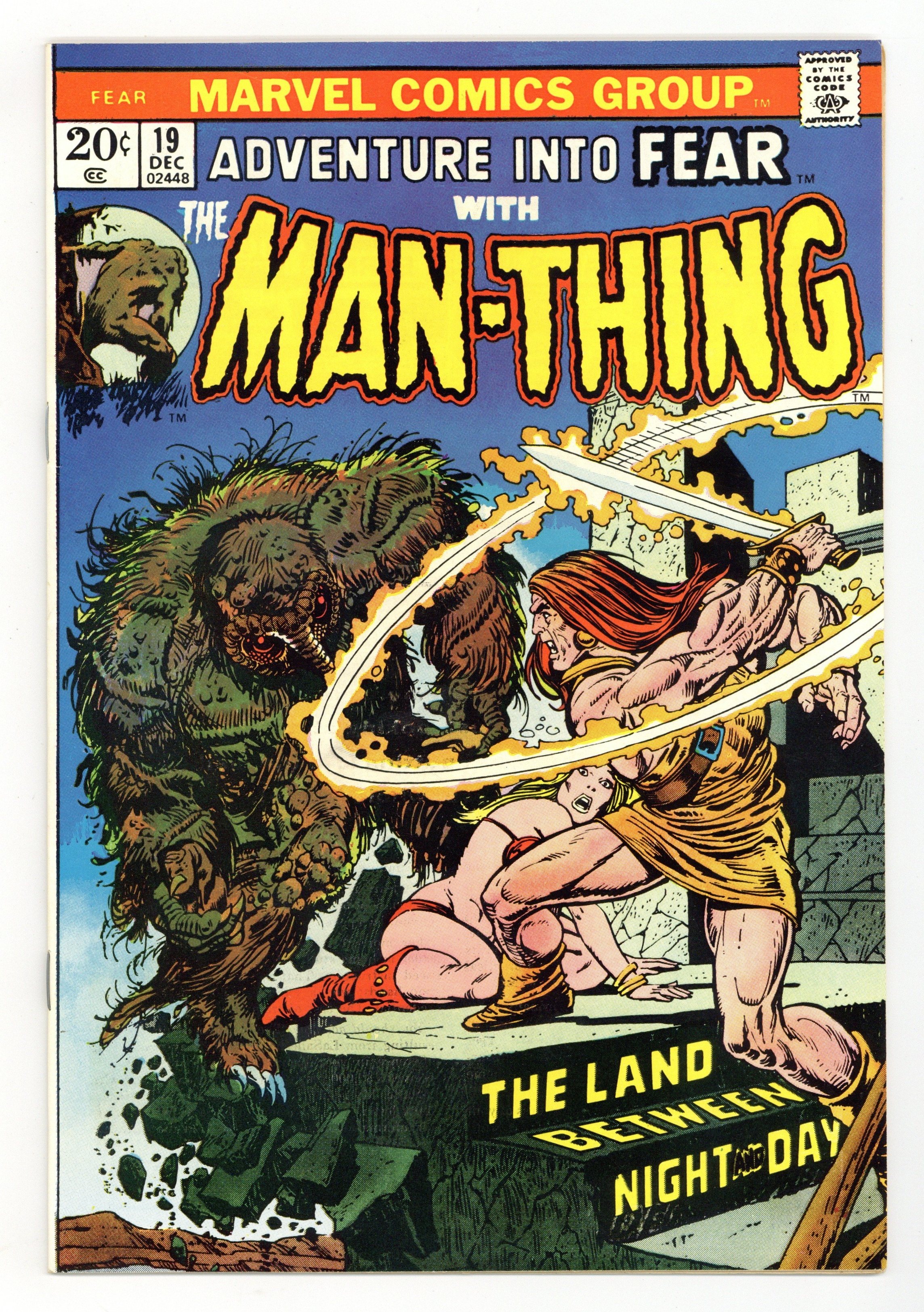Starts Apr 4 1st appearance of Howard the Duck - Cover pencils by Gil Kane, inks by Ernie Chan. "The Enchanter's Apprentice!", script by Steve Gerber, pencils by Val Mayerik, inks by Sal Trapani; As an improbable battle rages on below the castle, Man-Thing is picked up by Jennifer Kale, with the savage Korrek following from behind; Korrek catches up with Kale and the Man-Thing and attacks the two of them; Jennifer suddenly awakens screaming, and as her brother and grandfather burst into the room to reassure her it's all a dream; However, Joshua Kale has his doubts that his granddaughters nightmares being just dreams; His suspicions are validated when Korrek is transported to Earth's dimension through a jar of peanut butter and resumes his attack on Jennifer; However, when Joshua and Andy burst into the room, Korrek believes himself surrounded and flees into the swamp; The Kales are soon visited by Dahkim the Mystic who has come to tell the Kales about the disruption in the Nexus of Realities caused by the construction being done in the swamp; Korrek is visited by Howard the Duck, who has also found himself transported to Earth's dimension as well. Man-Thing stories continue in Man-Thing #1. 36 pgs., full color. Cover price $0.20.