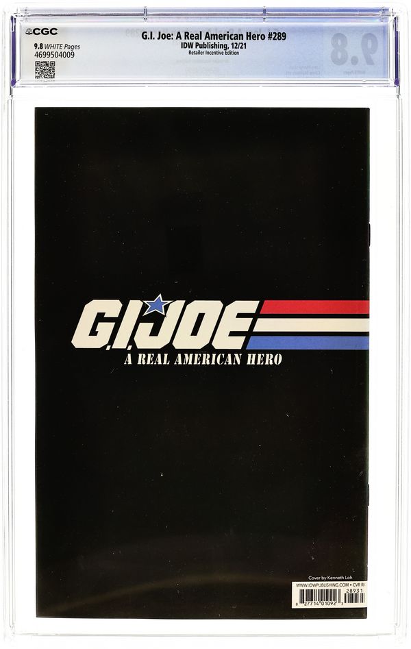 Tags: G.I. JoePublished Dec 2021 by IDW Publishing.GI Joe A Real American Hero (2010 IDW) 289RI CGC 9.8 Loh 1:10 Variant