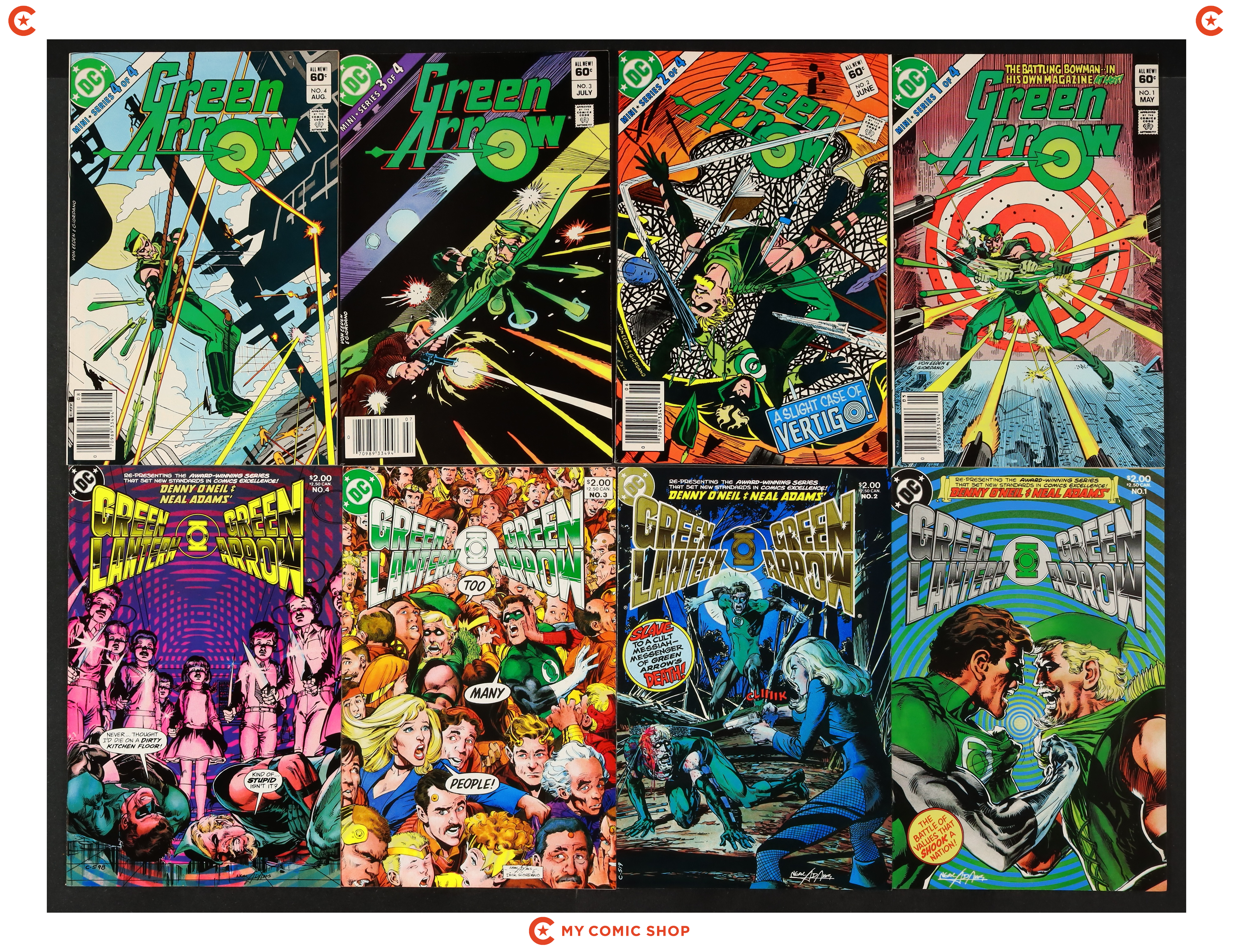 Issues 1N, 2-4 of Green Arrow (1983 Mini-Series); and 1-7 of Green Lantern Green Arrow (1983). Most will grade in the FN/VF to VF+ range.