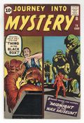 Starts Mar 16 Cover pencils by Jack Kirby, inks by Dick Ayers. "The Thing in the Black Box!," pencils by Jack Kirby; A shipwrecked man meets the legendary Pandora, who tricks him into releasing the demons from her box. "The Remedy Oil" text story, art by Marie Severin. "Midnight in the Wax Museum," pencils by Jack Kirby; An artist falls asleep in a wax museum and after midnight he is awoken by a sound; When he investigates, he finds that the wax figures are really aliens who are observing humans. "The Mechanical Men!," script by Stan Lee, art by Steve Ditko; An alien plot to infiltrate Earth with robotic dolls is unwittingly foiled by a police officer trying to get rid of peddlers. "Forever Is a Long Long Time!," art by Don Heck; A greedy businessman bullies a scientist into giving him a device that can give humans the 1,000-year lifespan of a giant redwood. 36 pgs., full color. $0.10. Cover price $0.10.