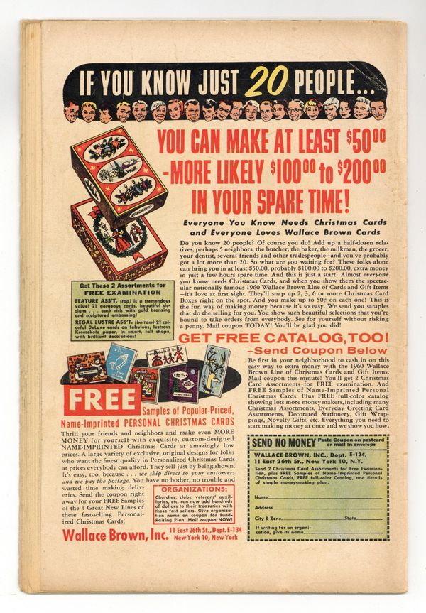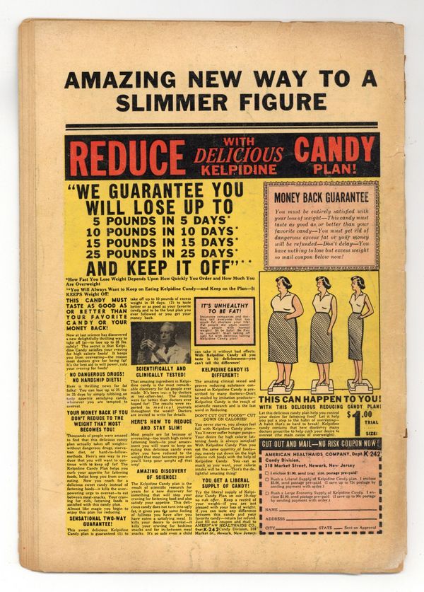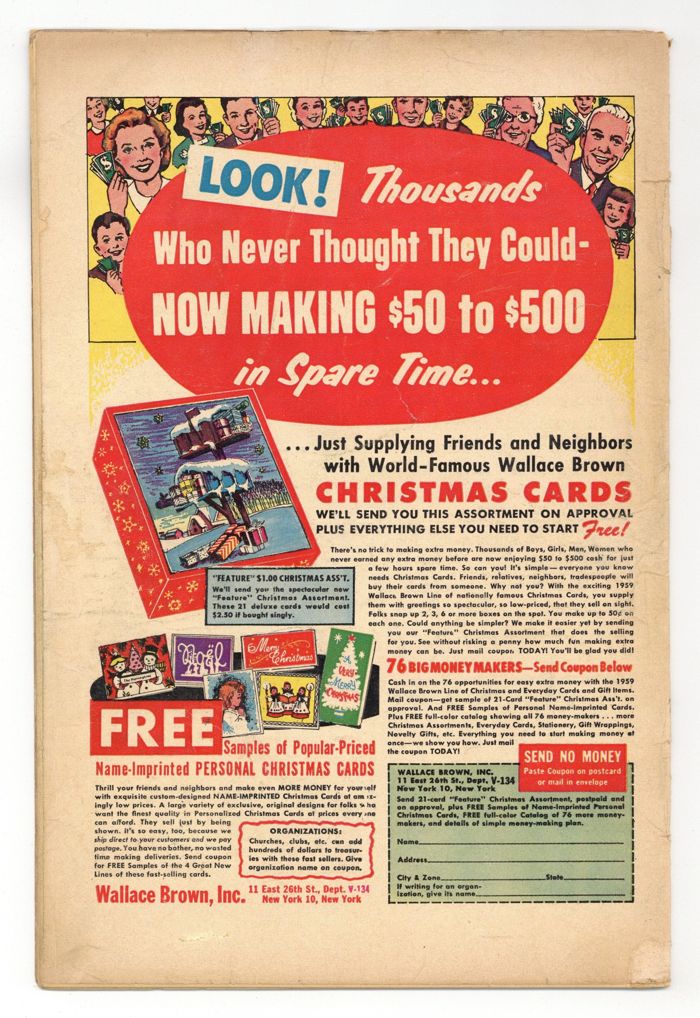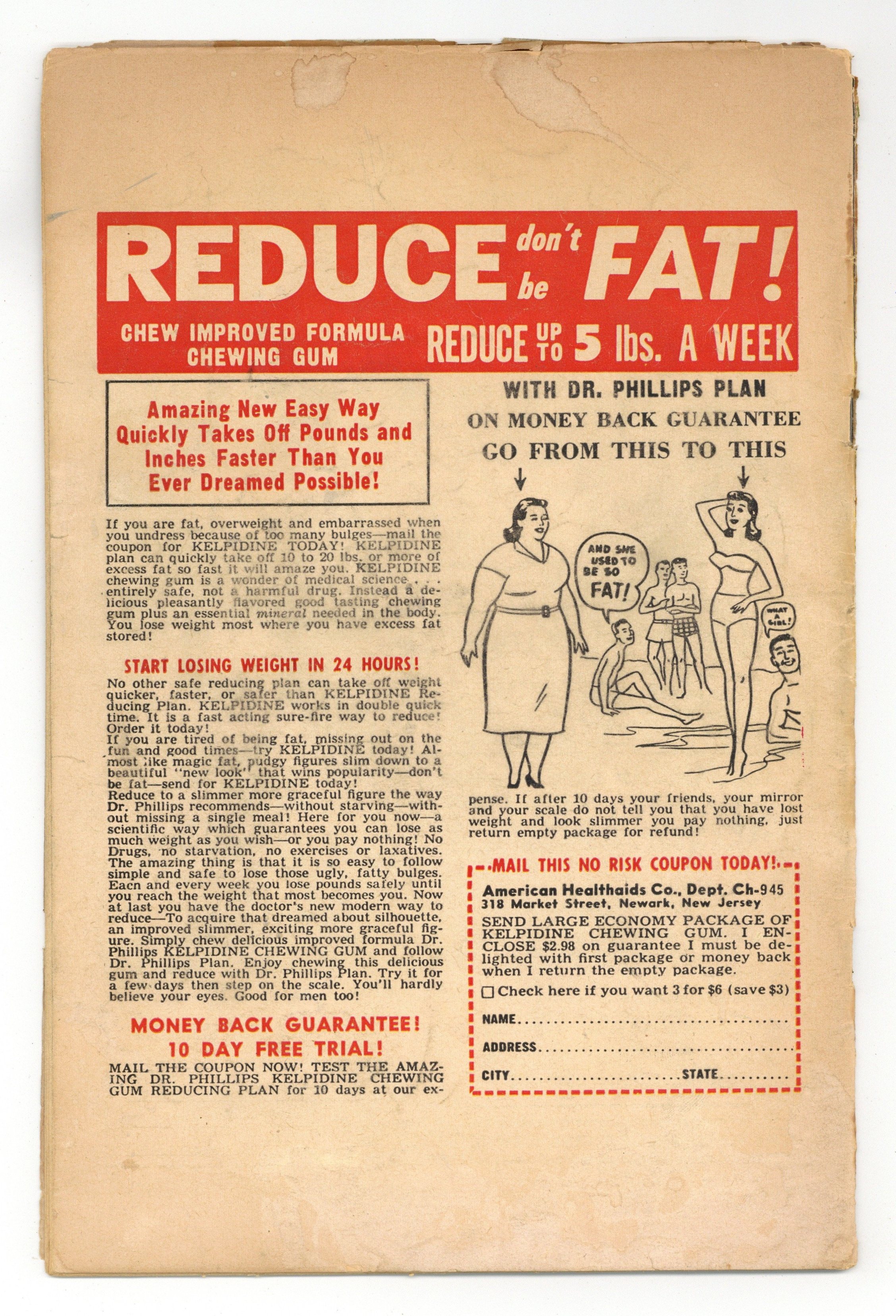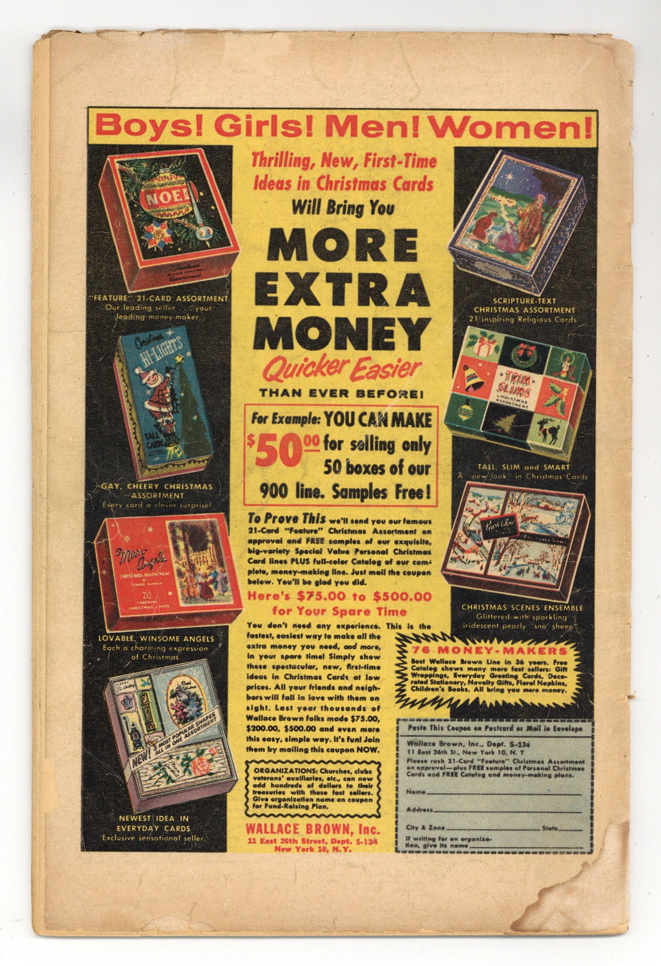 Starts Mar 9 Cover by Bill Everett. "The Menace of the Green Men," script by Carl Wessler, pencils by Al Williamson, inks by Ralph Mayo; Light images of aliens from space become the fall guy of a crook in a series of planned robberies. "While the City Sleeps," art by Doug Wildey; A midget who poses as a ventriloquist's doll in order to pull off heists has a chemist friend who works on suspended animation pills as a hobby. "The Strange Power of Henry Grey," art by Ed Winiarski; A man finds he has the power to project his spirit across distance; He uses this ability to do evil to people as he is a hateful person. "The Taboo," script by Carl Wessler, art by Tony DiPreta; When a sailor upstages a native witch doctor, the witch doctor maroons the sailor on a small island surrounded by sharks. "The Heat's On" text story, art by Gene Colan and Don Heck. "The Outcast," inks by Vince Colletta; A telepath who works for the police department is shunned by others because of his ability until he saves a trapped boy. "The Haunted Halls," art by Frank Bolle; When a man enters a castle, he becomes the resident ghost. 36 pgs., full color. $0.10. Cover price $0.10.