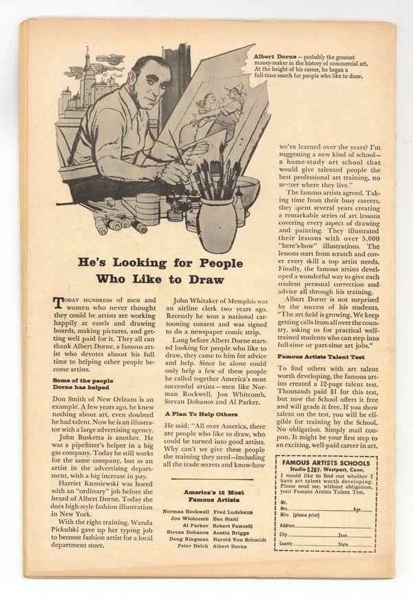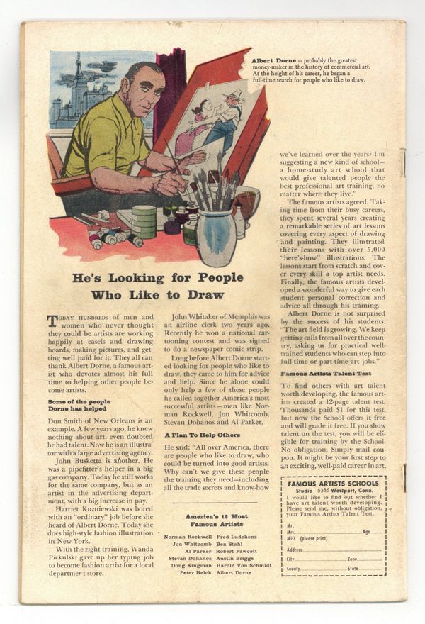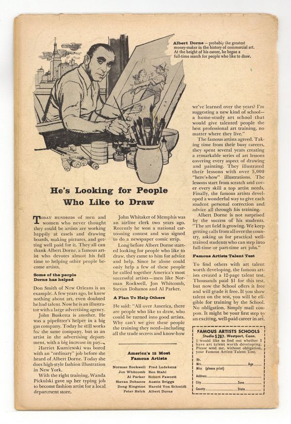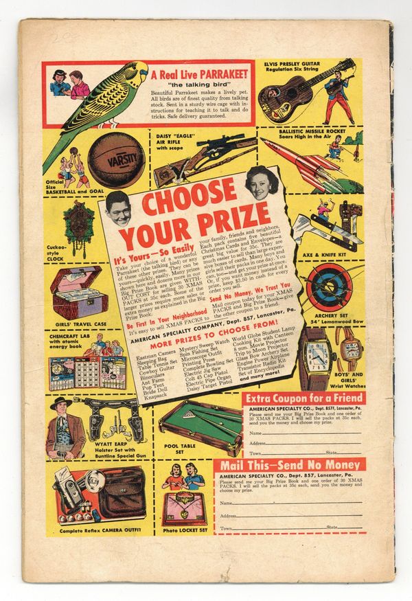 Starts Mar 9 Cover by Steve Ditko. "I Brought the Roc to Life!," pencils by Jack Kirby, inks by Dick Ayers; Two newlyweds in Egypt uncover a huge egg in the sand that hatches into the Roc in the warm sunlight. "The Boy Who Vanished!," art by Paul Reinman; A lame boy wills himself to the future and his legs are healed before he sends himself home. "The Painting," art by Steve Ditko; An art dealer who buys quality paintings at rock-bottom insulting prices from poverty stricken artists and then sells them for thousands attempts to steal a beautiful painting from a gypsy who refuses to sell it; The dealer has the gypsy arrested on a trumped up charge and burgles the man's wagon to remove the painting. 36 pgs., full color. $0.10. Cover price $0.10.