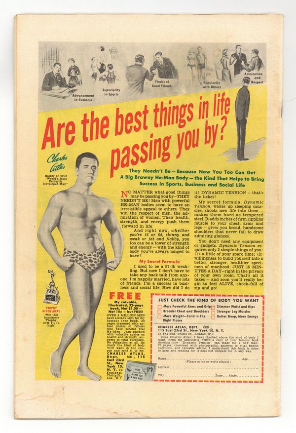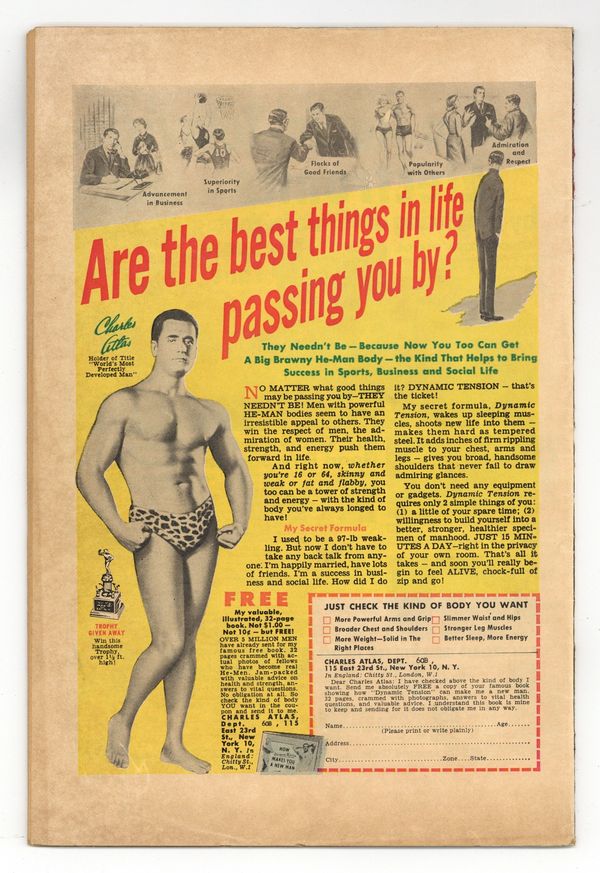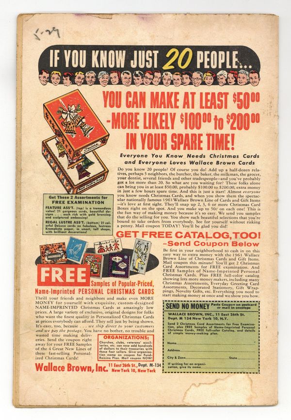 Starts Mar 9 Cover pencils by Jack Kirby, inks by Steve Ditko. "Goliath! The Monster That...Walked Like a Man!," pencils by Jack Kirby, inks by Steve Ditko; An advertising man tricks an advance agent of a proposed invasion from Atlantis into returning to Atlantis by building a mannequin even larger than Goliath and threatening to wage war with his people for the surface of Earth. "The Heat's On" text story, art by Gene Colan and Don Heck. "I Was Trapped by the Mole Men!," art by Don Heck; A snobbish mine owner is captured by subterranean creatures and kept in a zoo until the mine foreman rescues him. "The Dangerous Doll," pencils by Jack Kirby; A poor man finds a doll in the field and gives it to his lame daughter. "I Took a Journey Into Fear!," art by Steve Ditko; A man wants to build a time machine, but his colleagues say it is impossible. 36 pgs., full color. $0.10. Cover price $0.10.