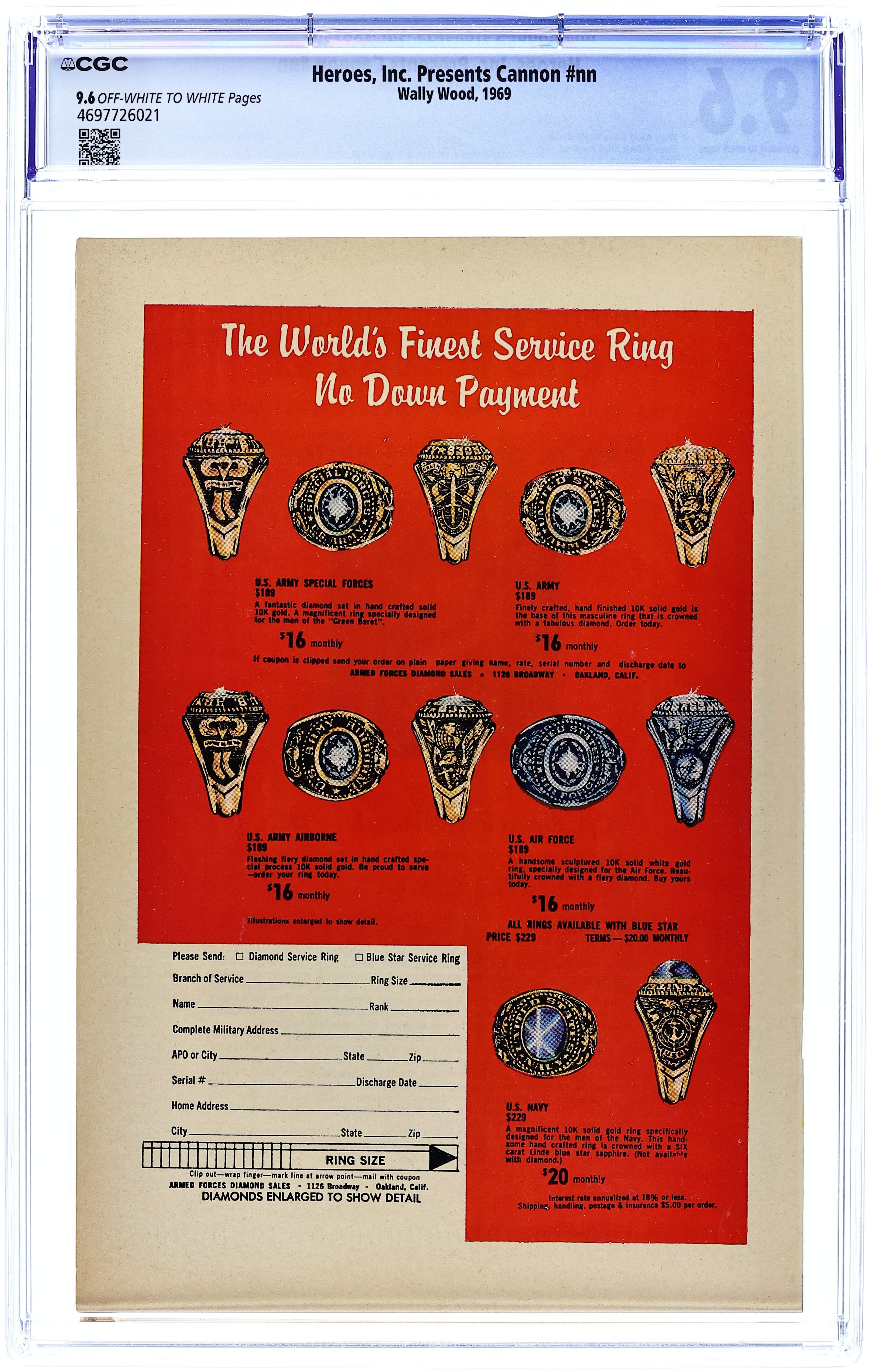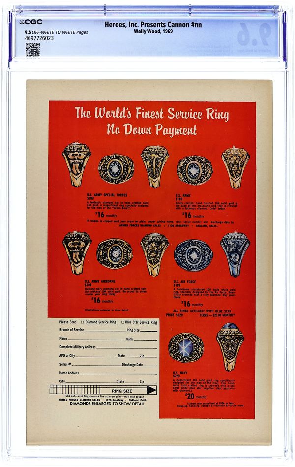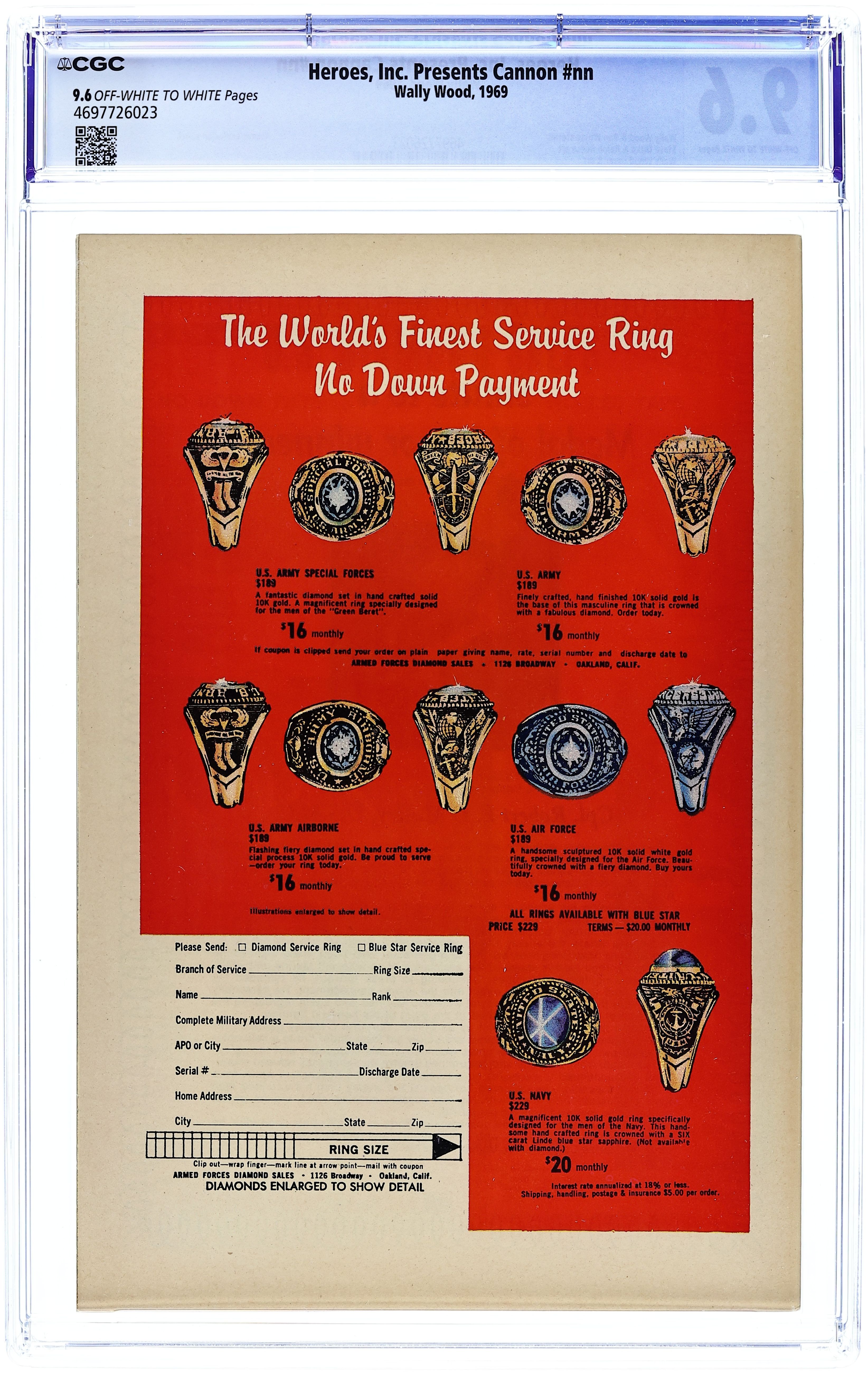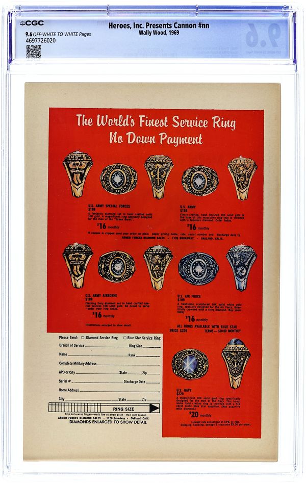 Published 1969 by Wallace Wood.Heroes Inc. Presents Cannon (1969) 1 CGC 9.6