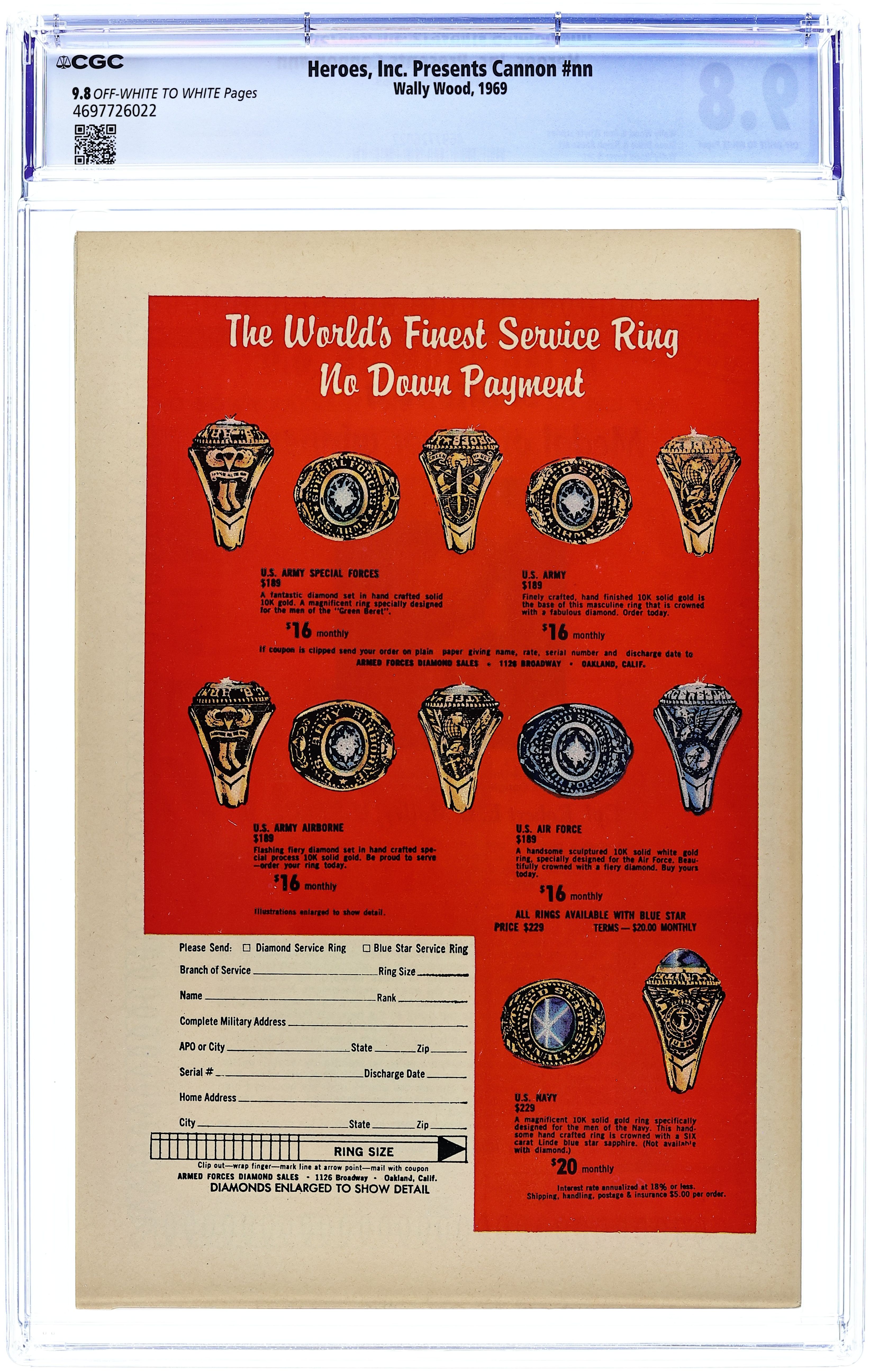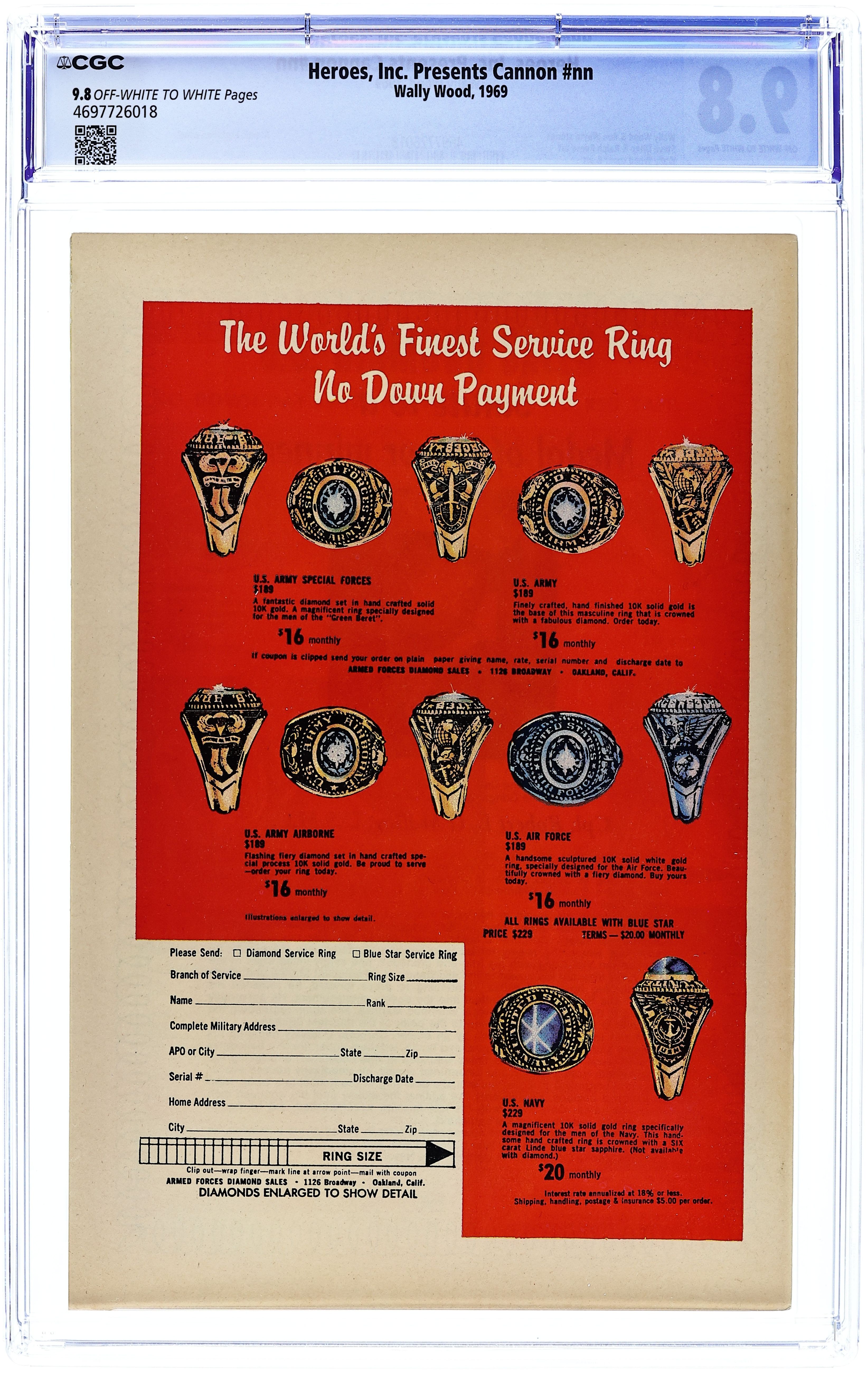 Published 1969 by Wallace Wood.Heroes Inc. Presents Cannon (1969) 1 CGC 9.8