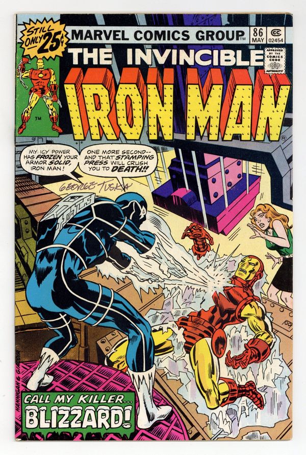 Starts Jan 26 1st appearance of Blizzard in "The Gentleman's Name is Blizzard!" Part 1 of 2. Story by Bill Mantlo. Art by George Tuska and Vince Colletta. Cover by Ed Hannigan and Frank Giacoia. The Blizzard breaks into the Stark International Long Island plant to steal the Climatron! Can Iron Man defeat the Blizzard before his armor is frozen solid? First appearance of Gregor Shapanka as the Blizzard. He was previously the villain called Jack Frost. (Note: The letters page contains Marvel Value Stamp series B #84. There exists a scarce 30-cent variant of this issue.) Cover price $0.25.