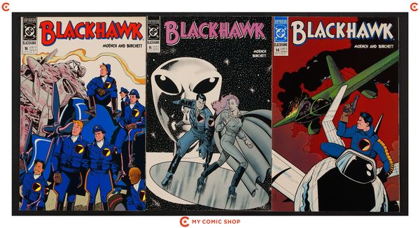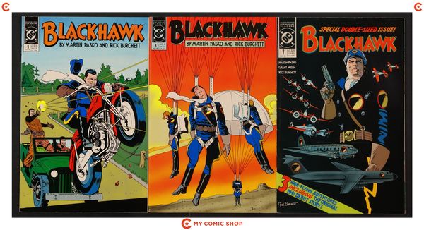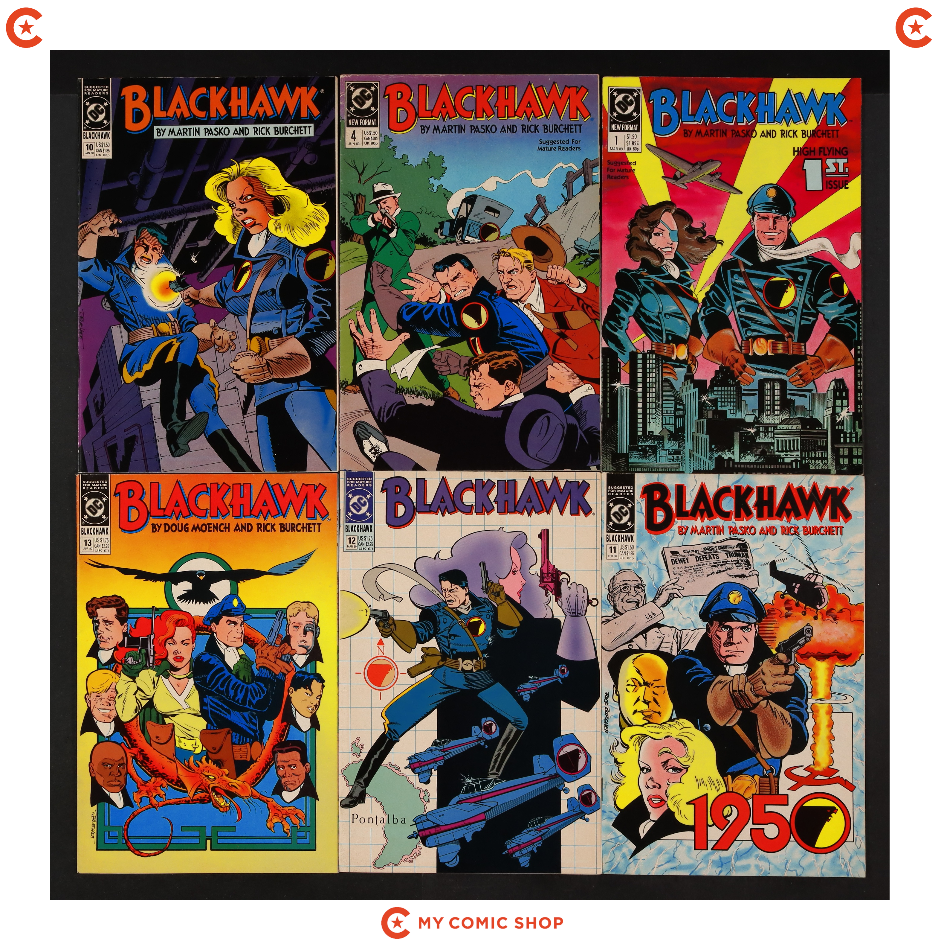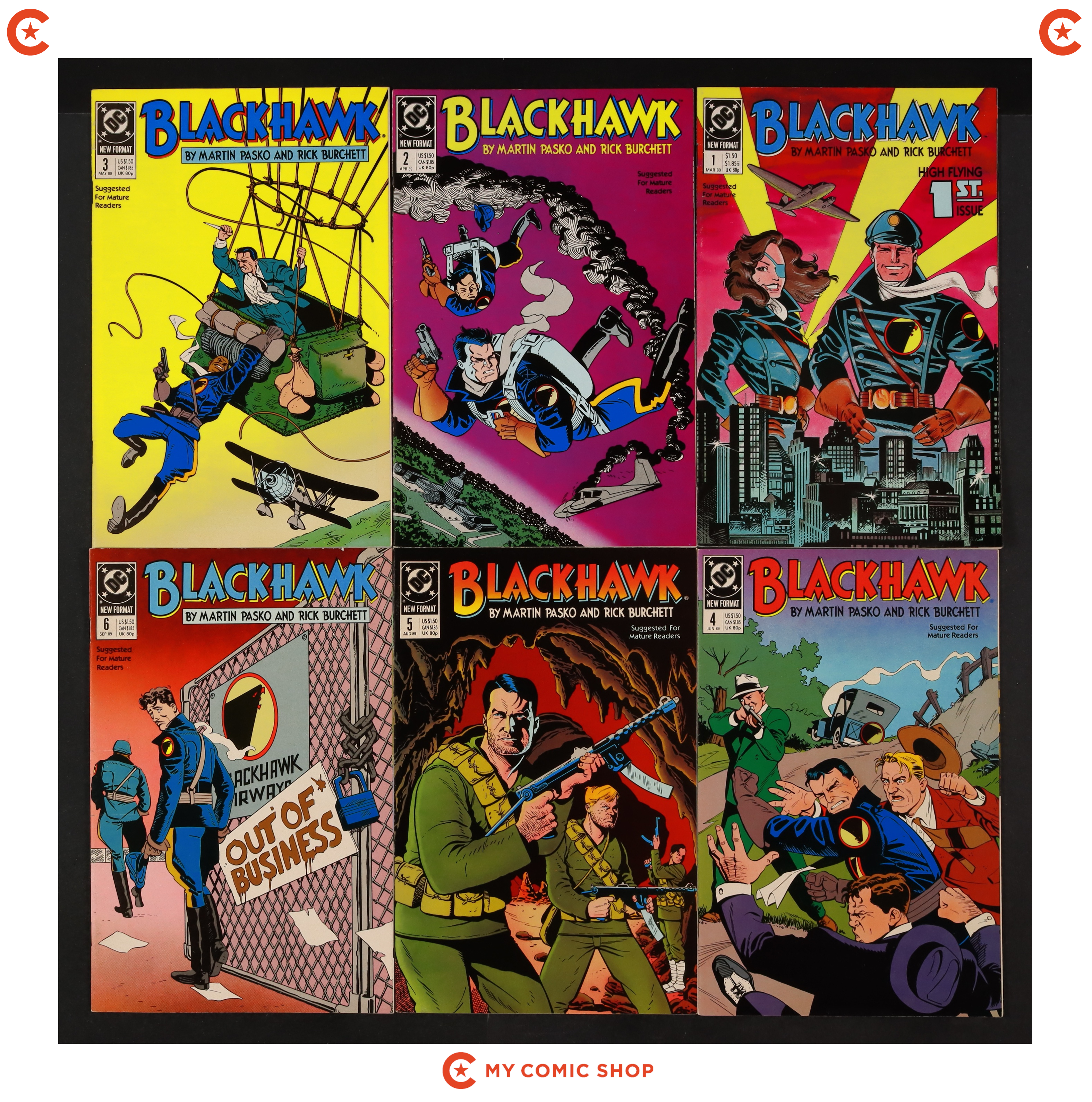 Issues 1-4 of Blackhawk (1989 2nd Series); 1 of Blackhawk (1989) Annual; and 1-3 of Blackhawk (1988 Limited Series). Most will grade in the FN range.