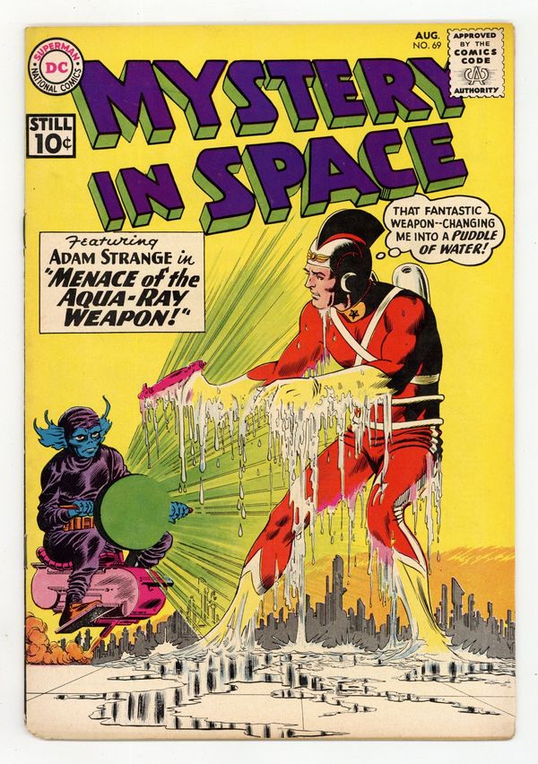 Starts Mar 2 Adam Strange stars in "Menace of the Aqua-Ray Weapon!" (pencils by Carmine Infantino). Back-up stories: "Duel of the Star Gladiators!" and "What Happened on Sirius-4?" (art by Sid Greene?). Infantino cover pencils. 36 Pages, Full Color. Cover price $0.10.