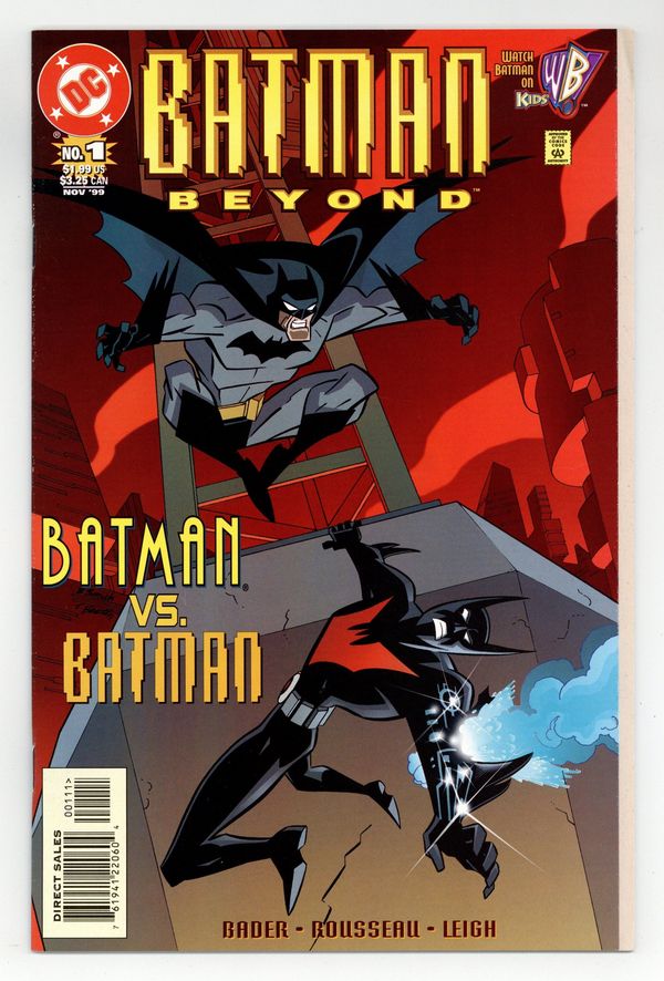 Starts Feb 9 WRITTEN BY HILARY J. BADER; ART BY CRAIG ROUSSEAU AND ROB LEIGH; COVER BY BOB SMITH AND TERRY BEATTY It's the battle fans have demanded as classic Batman faces future Batman in the debut of a new ongoing title based on the hit Kids' WB animated series! Something seems to have gone horribly wrong with Terry McGinnis and now, as Batman, he's gone on a spree of terror, wreaking havoc on Gotham City. Bruce Wayne determines that the only way to stop him is to once again don the garb of the Dark Knight and bring down the new Batman. But there's much more here than meets the eye when the reader learns who's behind the terror and which Batman is being controlled! . FC, 32 PG." Cover price $1.99.