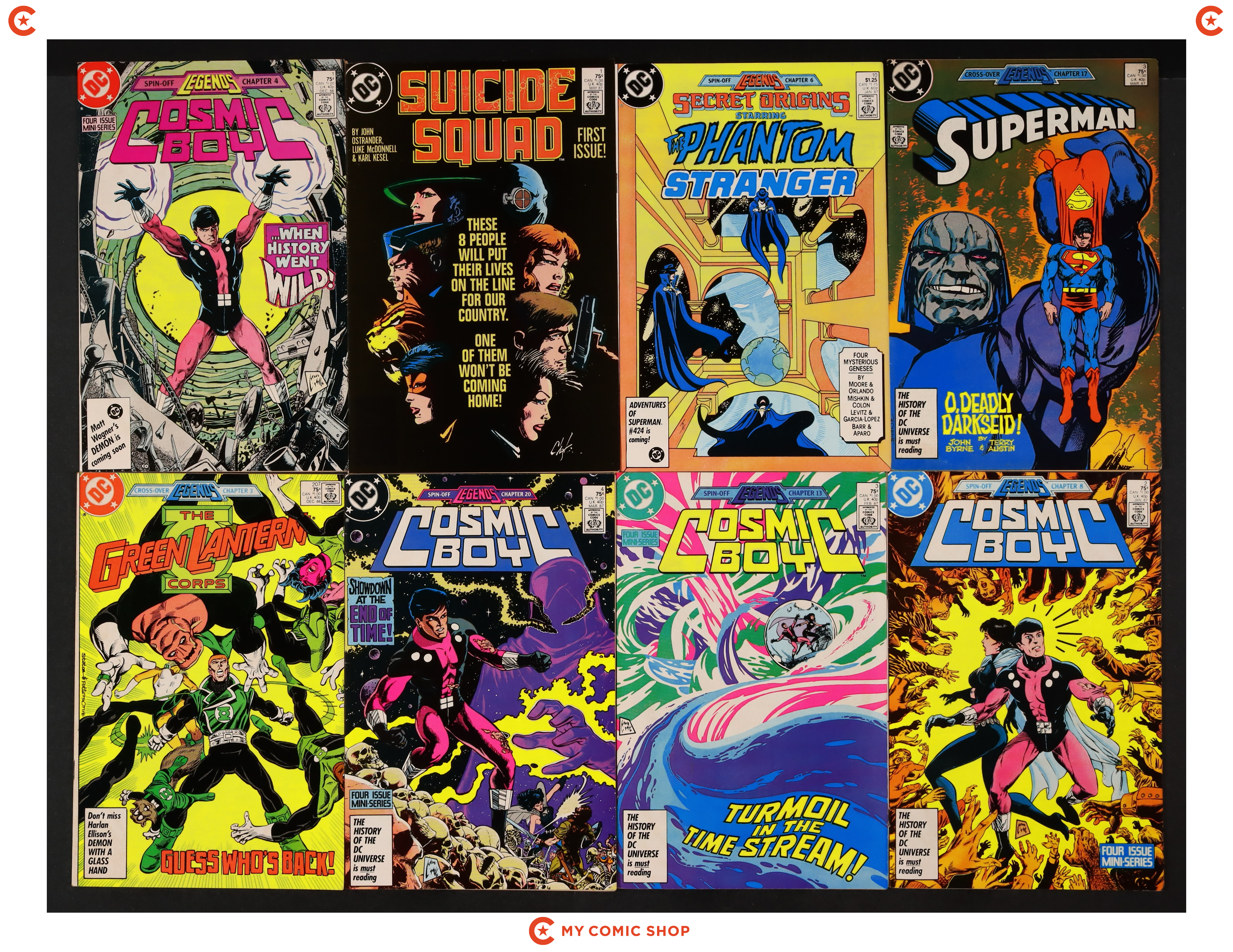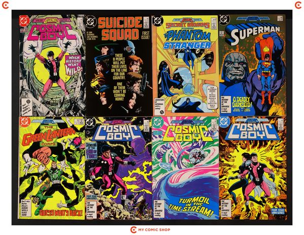 Issues 1A and 2-6 of Legends (1986 DC); 258-261 of Justice League of America (1960 1st Series); 3 of Superman (1987 2nd Series); 10 of Secret Origins (1986 DC 2nd Series); 1 of Suicide Squad (1987 1st Series); 1-4 of Cosmic Boy (1986); and 207 of Green Lantern (1960 2nd Series DC). Most will grade in the FN range with a few grading VG.