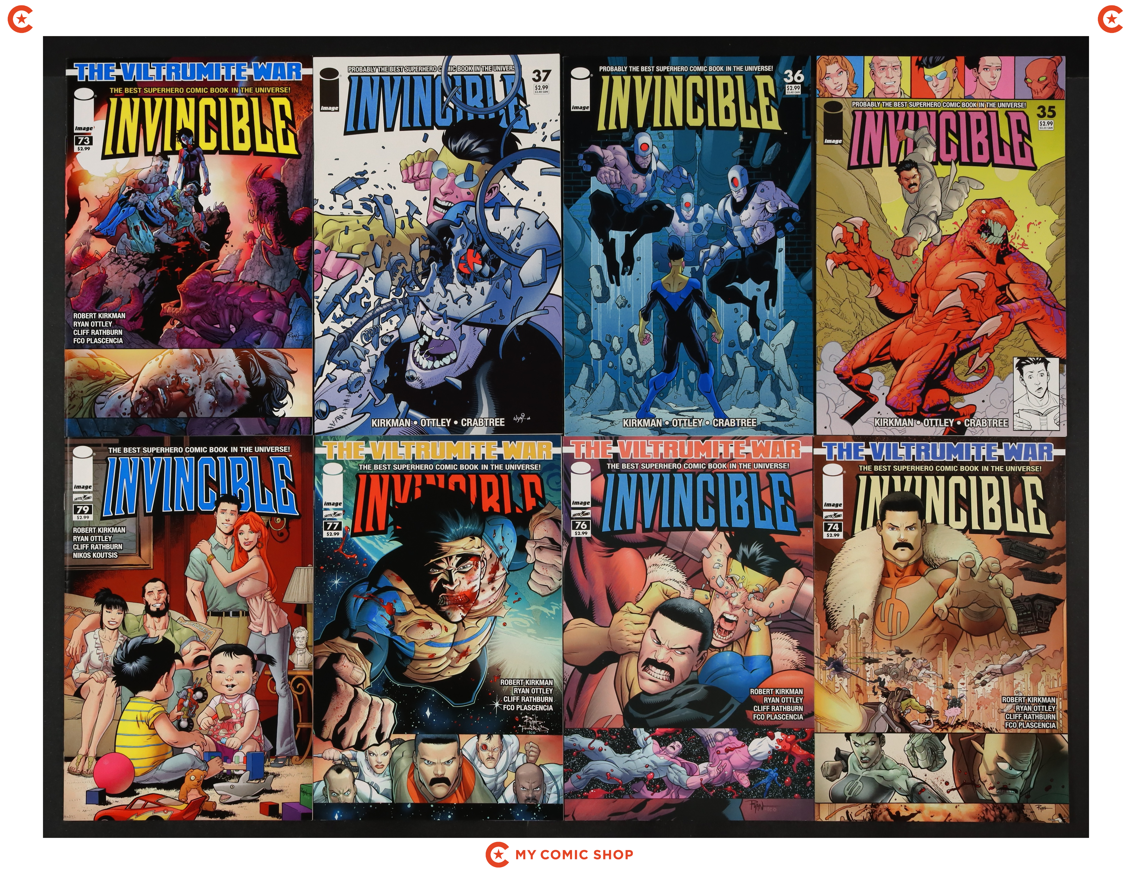 Issues 35-37, 73, 74, 76, 77, 79, 83, 86, and 87 of Invincible (2003 Image). Most will grade in the VF range with a couple grading FN+.